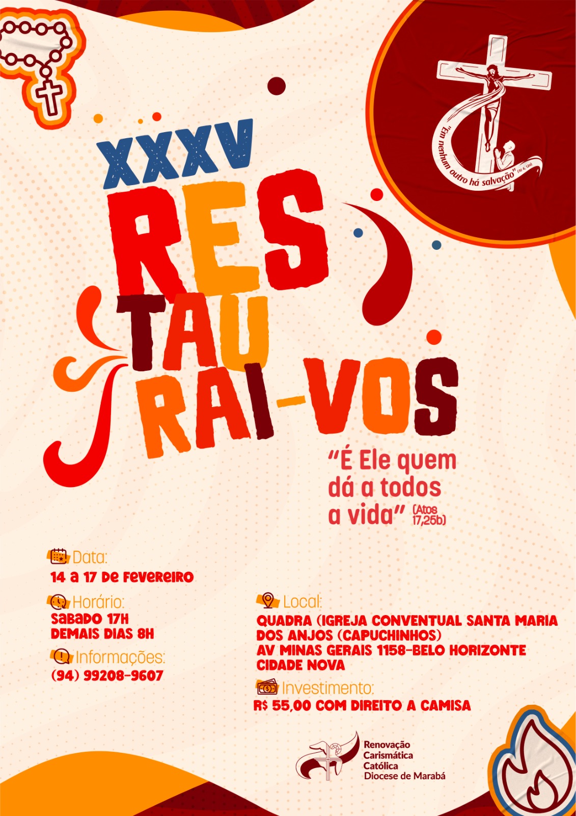 O Movimento Renovação Carismática Católica (RCC) da Diocese de Marabá se prepara para sediar a 35ª edição do seu tradicional retiro aberto ao público, o ‘RESTAURAI-VOS’. O evento será realizado durante o período de Carnaval, nos dias 14 a 17 de fevereiro de 2026, e visa ser um refúgio de fé e um momento de intenso fervor missionário para membros, pastorais, movimentos e simpatizantes.