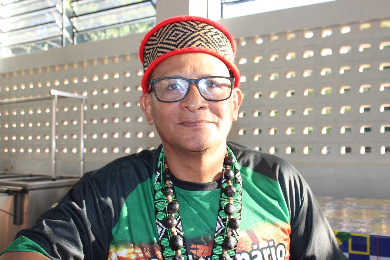 Edmar Guarani expressou a gravidade do desequilíbrio planetário e a incerteza do futuro para seus filhos e netos diante de rios secos e a falta de caça e peixe em seus territórios.