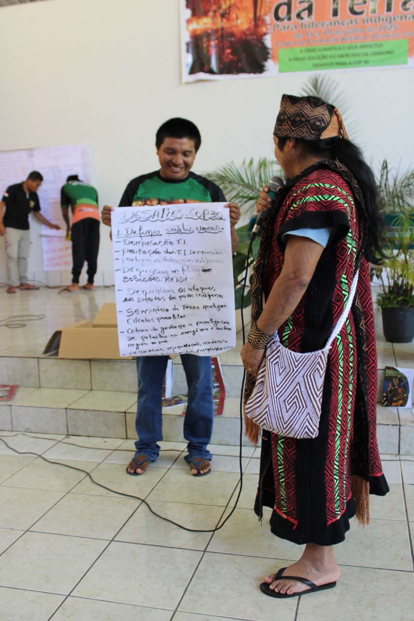 Itahu Kaapor ressaltou a importância da organização interna e do compartilhamento de experiências de luta contra as empresas de REDD, que continuam a assediar as comunidades.