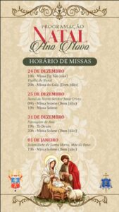 Dia 25 – Natal do Senhor – Missa às 9h e 19h.