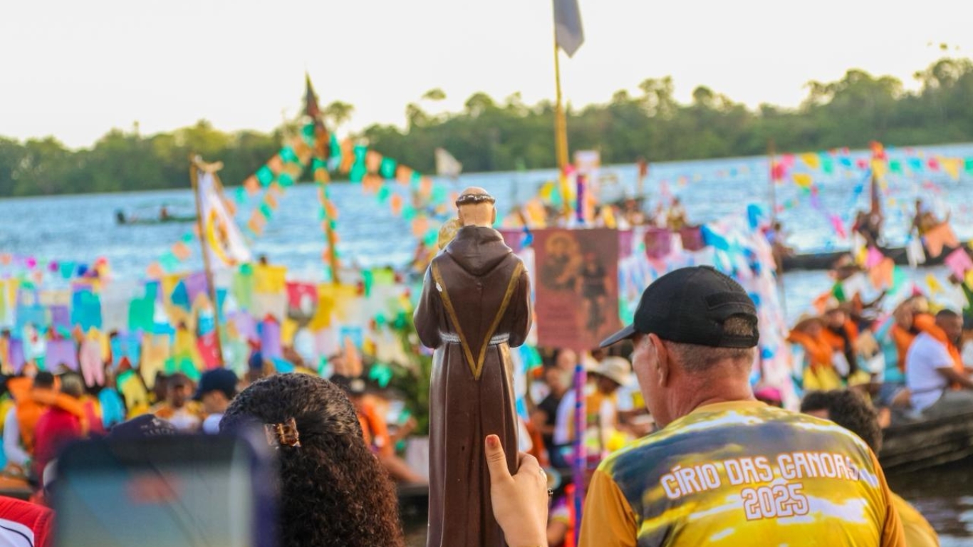 Neste ano, a casa escolhida para acolher a imagem foi a do casal Suelen Vinente e Carlinhos Dias (Rigico). De lá, os devotos seguiram em translado pelo rio em suas canoas, em um momento de fé e emoção que remete aos primeiros círios da cidade – uma verdadeira releitura da origem do que viria a se tornar o grande Círio Fluvial Noturno de Santo Antônio.