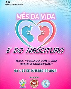 A Comissão Pró-Vida da Arquidiocese de Santarém prepara uma programação especial para celebrar o Mês da Vida e do Nascituro. Será de 2 a 27 de outubro com momentos de oração e reflexão em defesa da vida. Nesse período, haverá missas, rosários e Caminhada pela Vida.