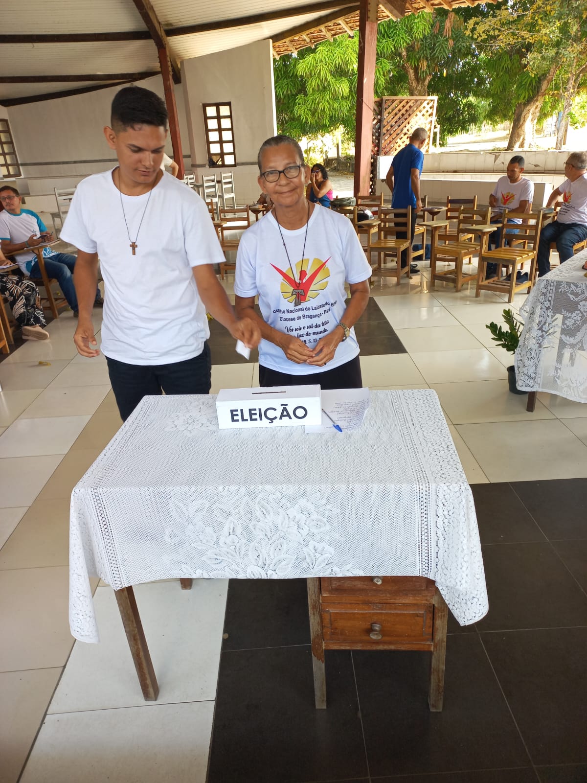 Encerrada a votação, a comissão eleitoral apresentou o resultado: Daise Santana, presidente; Francisco Oliveira, vice-presidente; Eliana Pereira, secretária; e Elziane Ambrósio, tesoureira. Também foram eleitos(as) os(as) responsáveis pelas comissões: Juventude — Victoria Ramos e Raimundo Gomes; Fé e Política — Vanilza Brito e Jairo Siqueira; Formação — Maria Santos e Maria Gusmão. A Comissão de Comunicação será anunciada em breve.