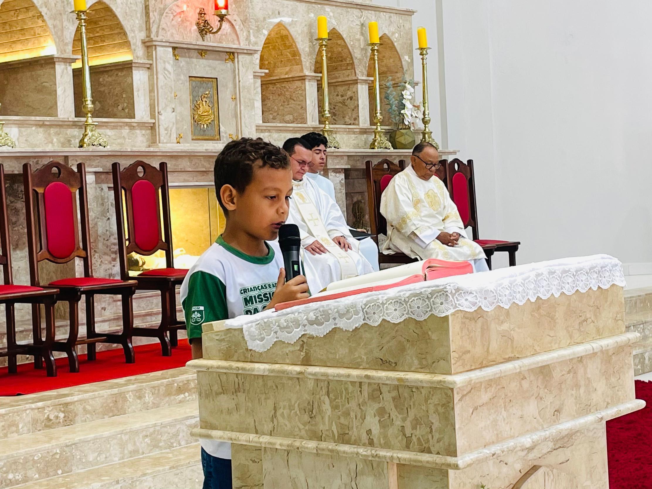 “As crianças da IAM vieram adorar a nosso Deus, agradecer por serem chamadas à missão. Porque cada criança, cada batizado ou batizada é uma missão. E qual é a missão? Mostrar o rosto misericordioso de Deus, mostrar o amor de Deus. Em cada cantinho onde a gente se encontra. Que não esqueçamos que somos uma missão. E nossa missão é amar” explanou Irmã Carmen Cruz Ruiz, missionária xaveriana, encarregada da dimensão missionária da Infância e Adolescência Missionária, na Diocese de Abaetetuba.