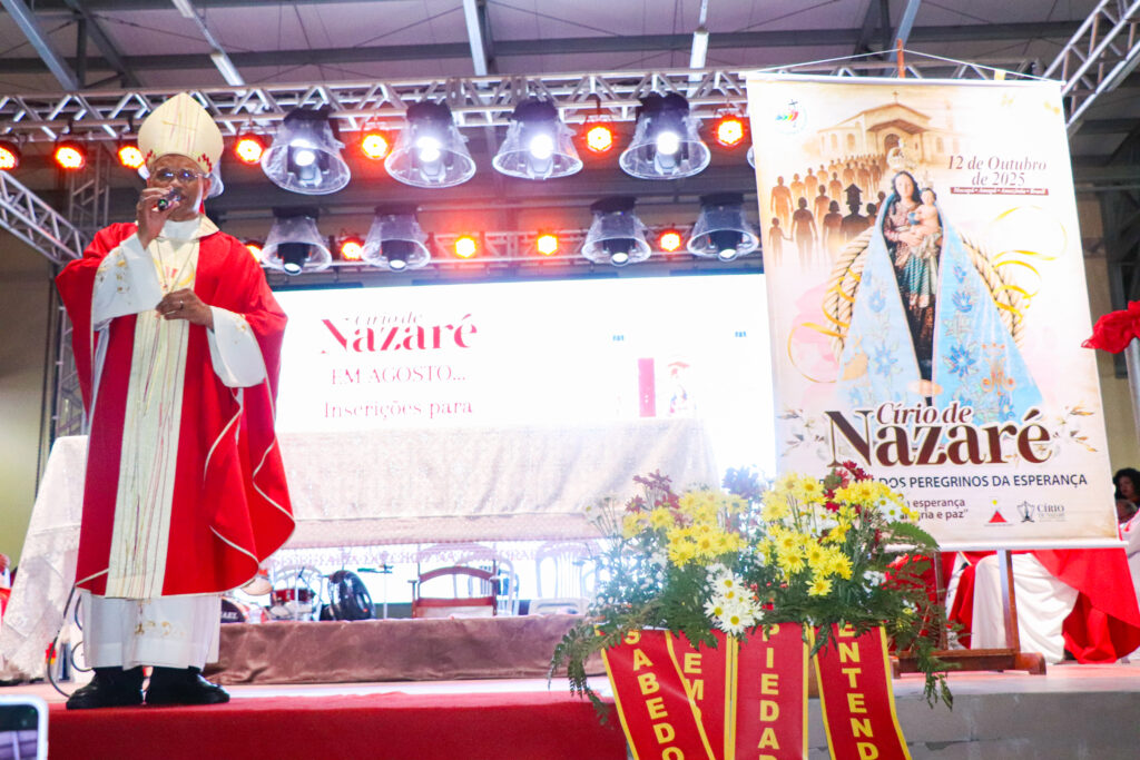 O bispo diocesano dom Antônio de Assis Ribeiro, SDB, apresentou o cartaz vencedor do concurso para a identidade visual do Círio de Nazaré 2025. O cartaz foi produzido pelo designer gráfico Jefferson Miranda, vencedor do concurso.