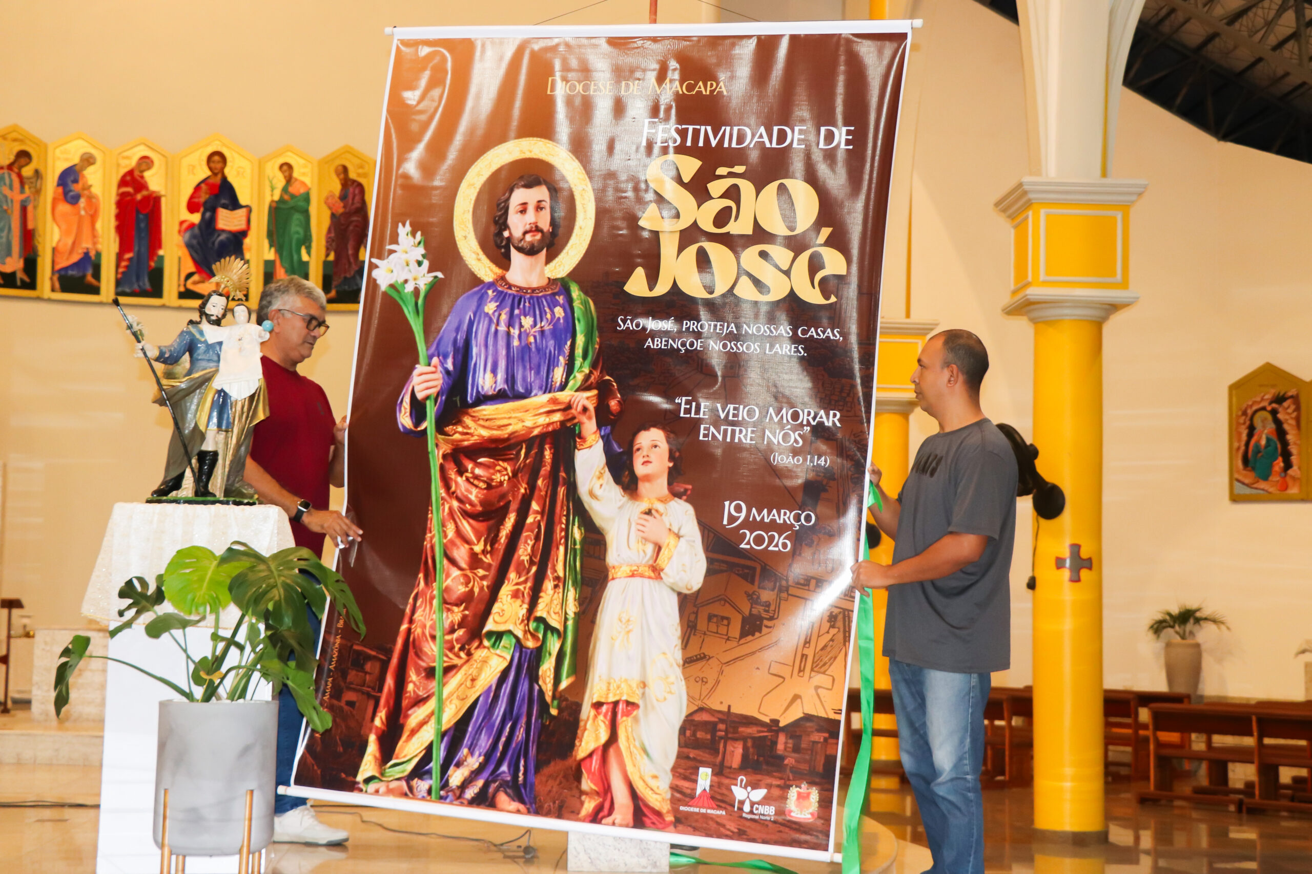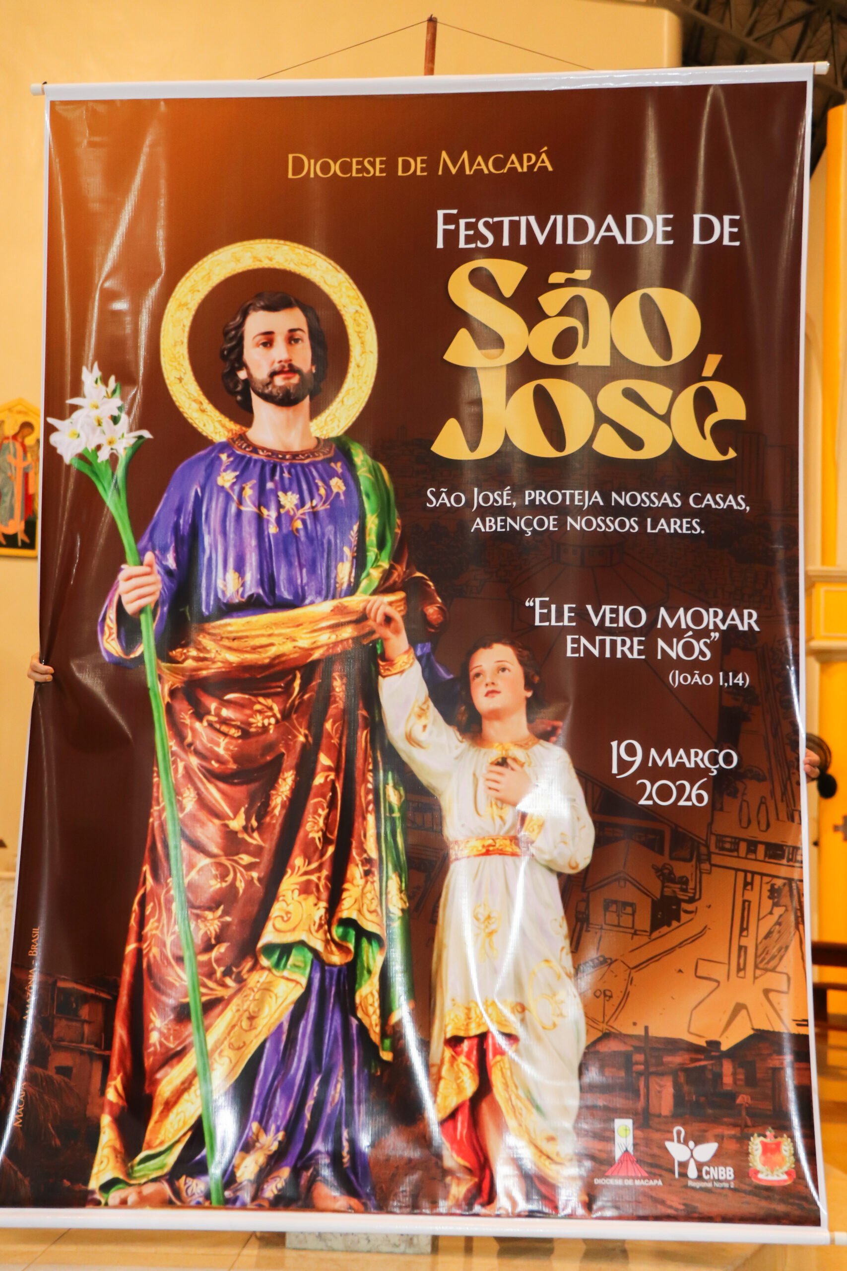 A noite do domingo (1/2), na Catedral São José, em Macapá, foi marcada pela missa de lançamento do cartaz e da programação da Festividade de 2026 do Santo Padroeiro. O tema da festividade deste ano é “São José proteja nossas casas, abençoe nossos lares”, com o lema “Ele veio morar entre nós” (João 1,14).