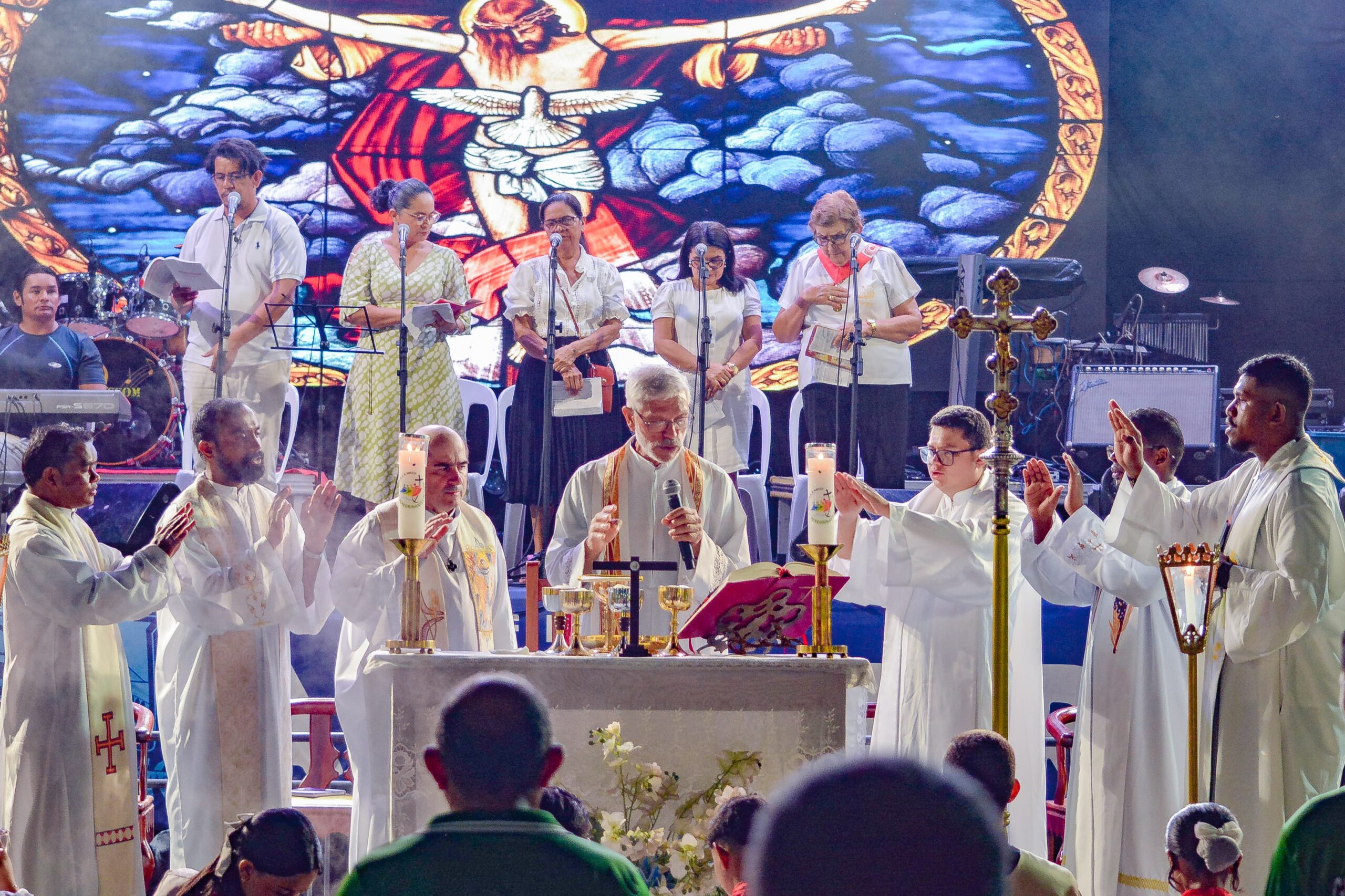 Na tarde do dia 13 de junho de 2025, as ruas de Alenquer se encheram de espiritualidade e devoção com a procissão de encerramento das festividades de Santo Antônio de Alenquer. Fiéis de todas as partes do município reuniram-se para seguir a procissão, que percorreu diversos trechos até chegar ao largo da Matriz, onde se deu início à Missa campal. A celebração foi presidida pelo pároco da Paróquia Santo Antônio de Alenquer, Padre Manuel Lopes – SVD, que contou com a participação dos demais padres presentes, em especial do Padre Joãozinho, scj.