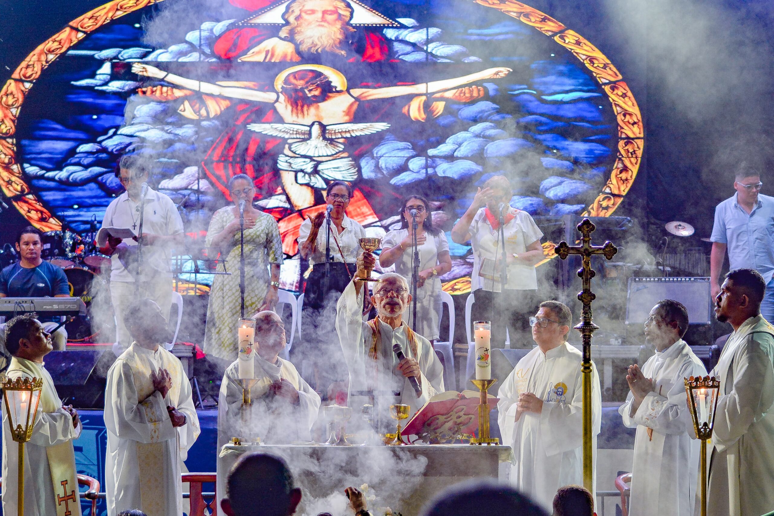 Na tarde do dia 13 de junho de 2025, as ruas de Alenquer se encheram de espiritualidade e devoção com a procissão de encerramento das festividades de Santo Antônio de Alenquer. Fiéis de todas as partes do município reuniram-se para seguir a procissão, que percorreu diversos trechos até chegar ao largo da Matriz, onde se deu início à Missa campal. A celebração foi presidida pelo pároco da Paróquia Santo Antônio de Alenquer, Padre Manuel Lopes – SVD, que contou com a participação dos demais padres presentes, em especial do Padre Joãozinho, scj.
