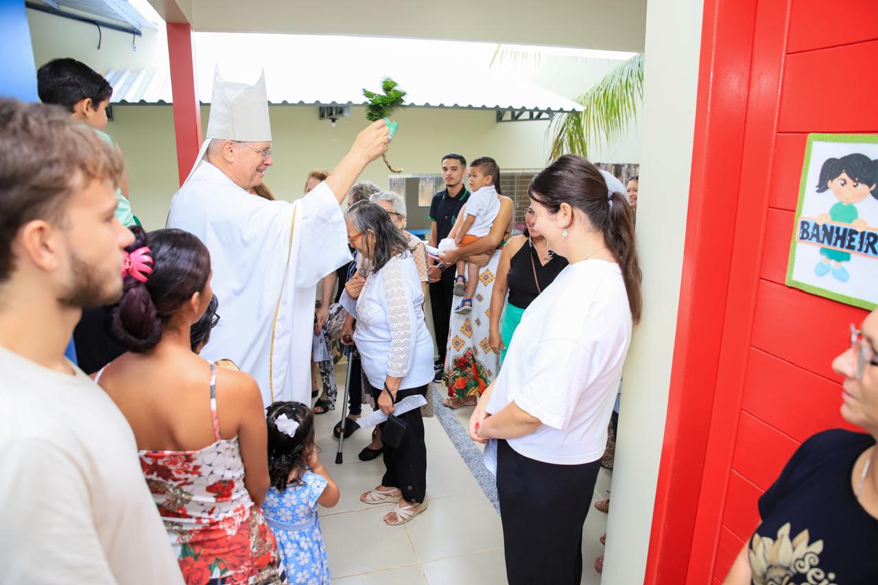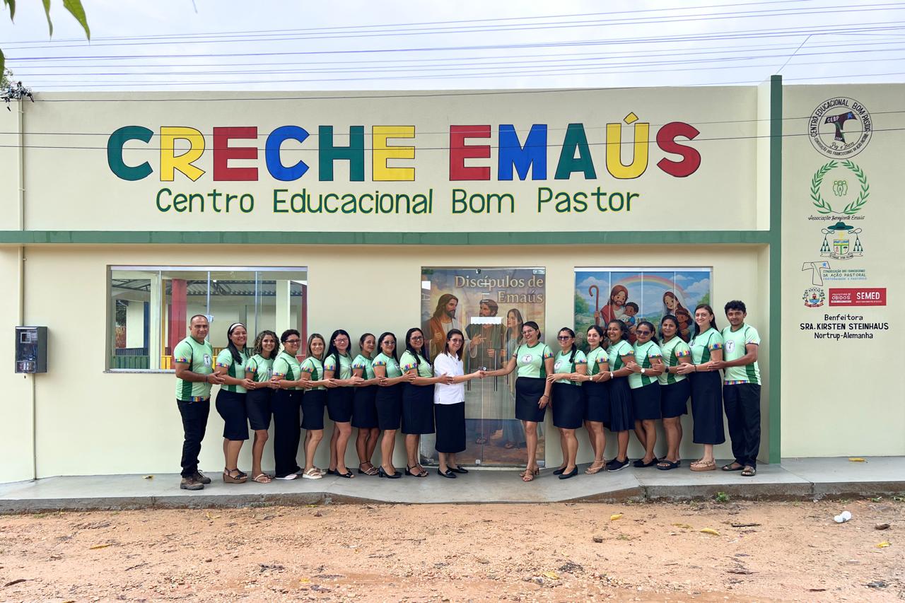 A solenidade teve início com uma Missa e Bênção conduzida pelo Bispo Diocesano, Dom Bernardo Johannes, acompanhado pelo padre Édson Galego. O projeto é fruto da Benfeitora, Sra. Kirsten Steinhaus, Nortrup-Alemanha, e de uma rede de trabalho que envolve a Diocese de Óbidos, a Associação Beneficente Emaús e a Congregação das Franciscanas da Ação Pastoral, contando ainda com a parceria da Secretaria Municipal de Educação (SEMED).