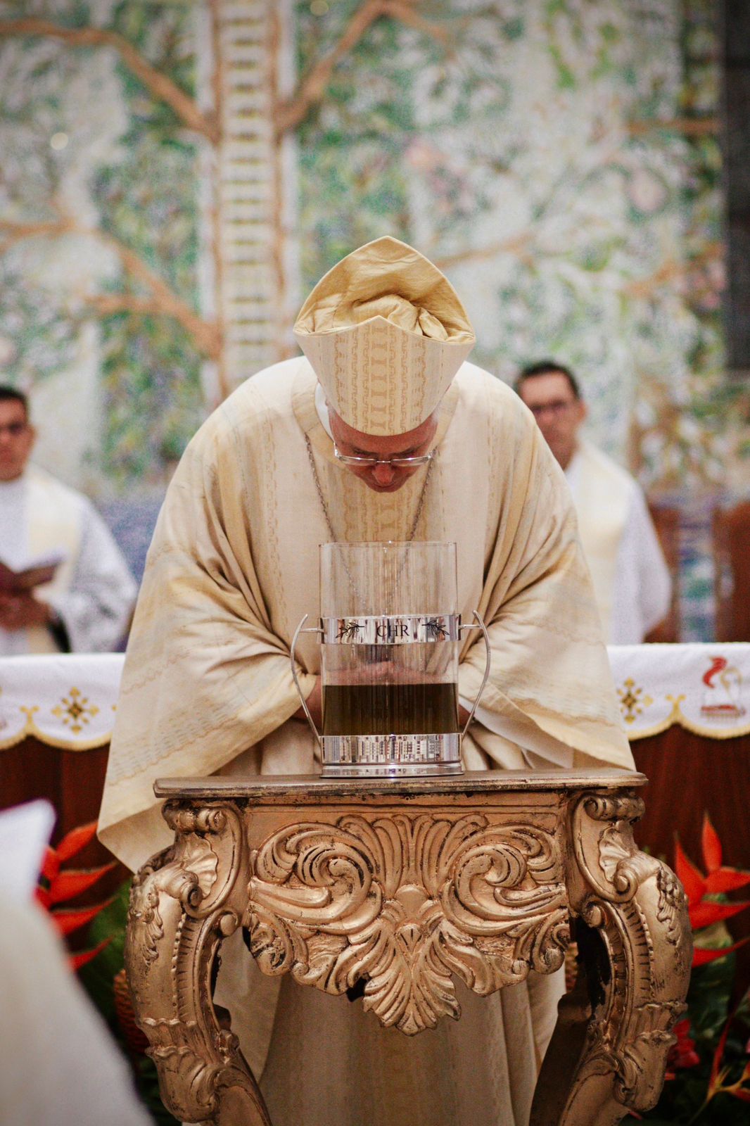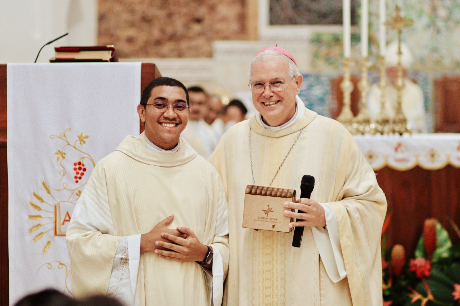 Missa dos Santos Óleos, foi realizada na noite de quarta-feira, (11), na Catedral de Sant’Ana, que celebra a unidade da Igreja e é, também, um momento de renovação da promessa Sacerdotal dos Religiosos. A Celebração foi presidida pelo Bispo Diocesano, Dom Bernardo Johannes, além de ser concelebrada por todo Clero da Diocese de Óbidos, em especial estava presente o Bispo Emérito de Parintins, Dom Giuliano Frigeni, PIME, que está ministrando o Retiro do Clero em nossa Diocese.
