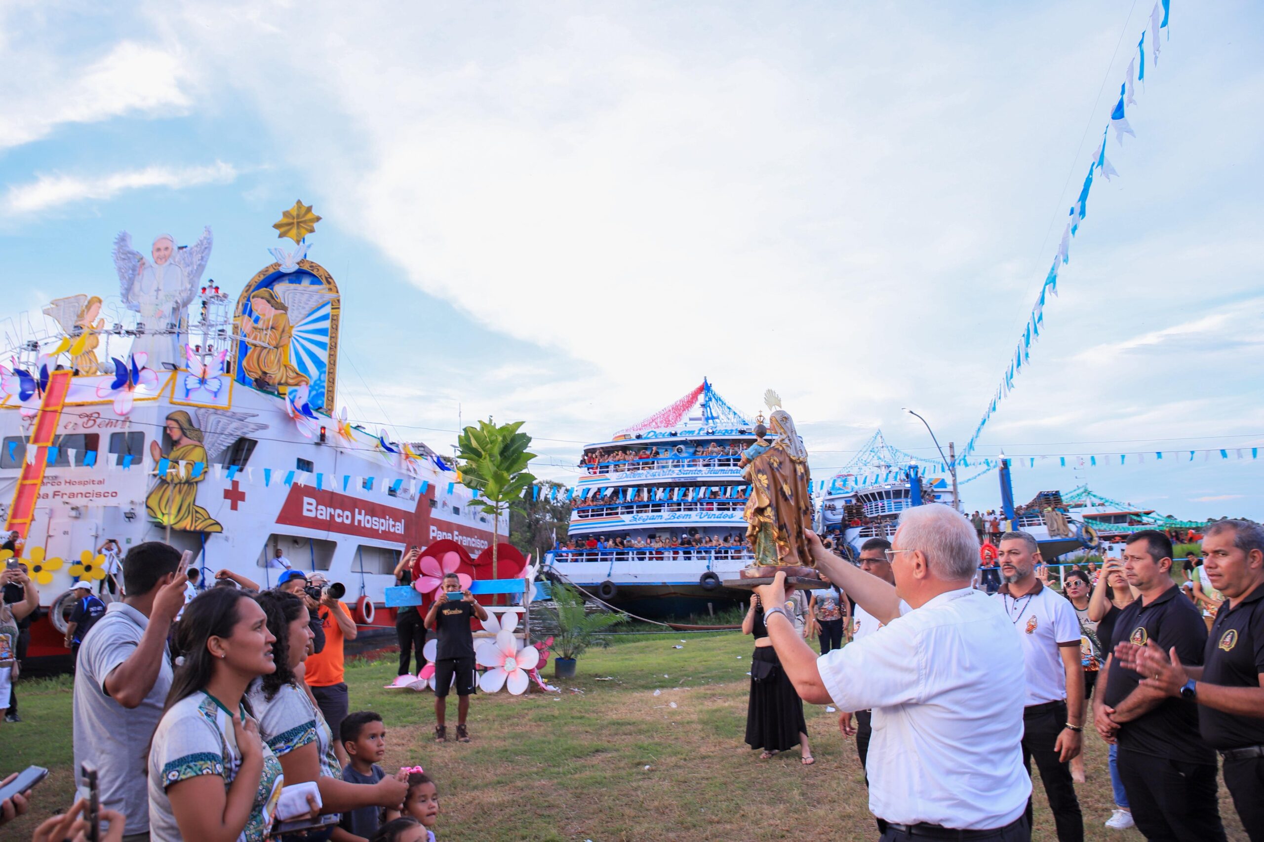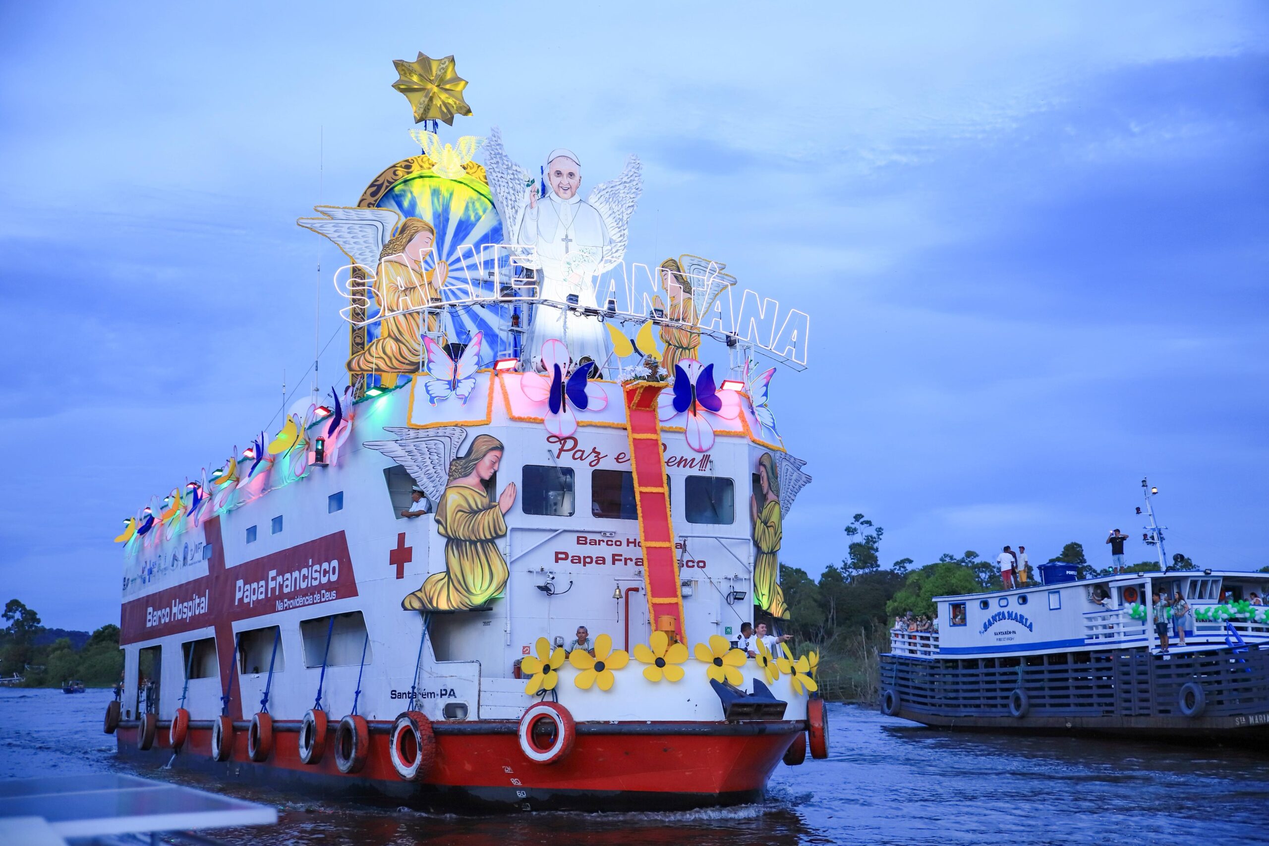 Este ano, a Imagem de Sant’Ana, foi levado no Barco Hospital Papa Francisco na Providência de Deus, apresentando a mensagem de paz, amor e esperança, gestos que o Papa Francisco transmitia ao povo da Amazônia. Em sua memória foram prestadas inúmeras homenagens, o mundo reconhece seu legado de humildade, simplicidade e a defesa dos mais vulneráveis, além de sua mensagem de esperança e fraternidade, com sua força. Em Óbidos foram realizados projetos que beneficiam as pessoas que mais precisam de ajuda, em especial, hoje, os Barcos Hospitais que levam saúde, amor e esperança, por toda a Amazônia, demonstrando o seu cuidado e seu carinho, se fazendo presente no meio de todos nós.
