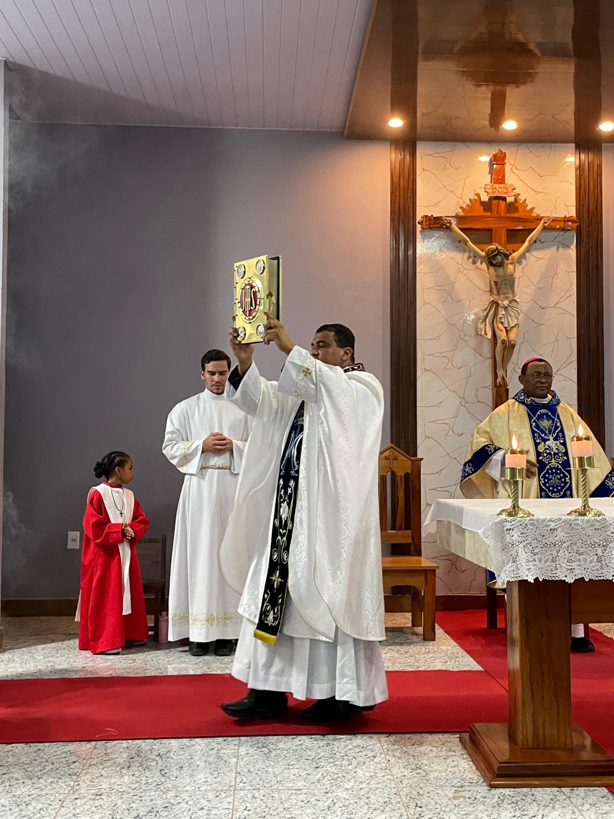 Nomeado primeiro pároco, Padre Gerfeson Mendes dos Santos também se dirigiu às comunidades com palavras de gratidão e esperança. “Esta paróquia não começa hoje, ela já vive no coração de cada comunidade. Assumo esta missão com humildade e esperança, contando com a colaboração de todos para continuarmos anunciando o Evangelho e cuidando da vida”.