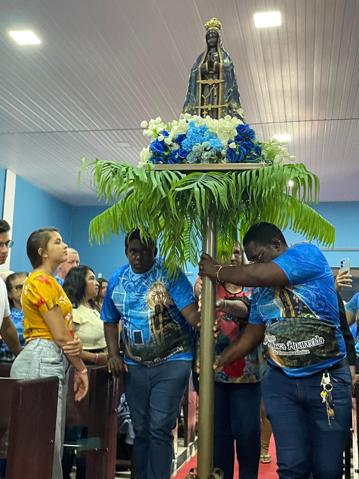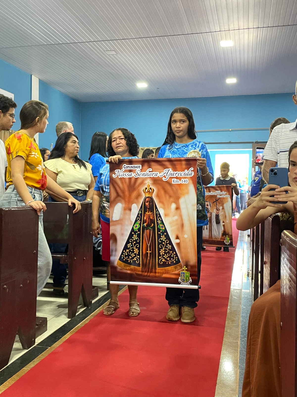 Nilma também recordou a importância do apoio recebido ao longo do caminho. “Somos profundamente gratos a Dom João Muniz e ao Padre Jeová de Jesus Morais, que acolheram e aceitaram nosso pedido quando ainda éramos Área Pastoral. Hoje, sob o amor de Maria e a orientação do nosso pároco, Padre Gerfeson Mendes dos Santos, nos tornamos oficialmente Paróquia Nossa Senhora Aparecida da Transamazônica”.