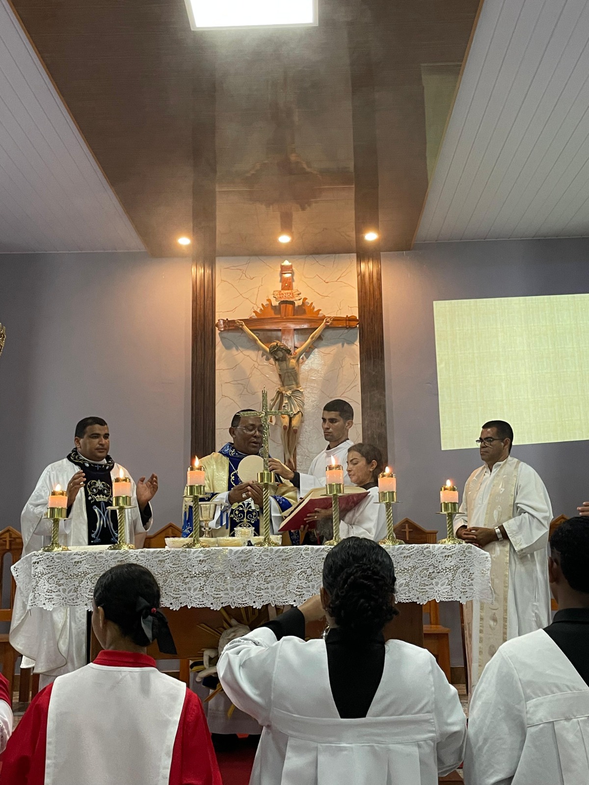 A celebração solene foi presidida pelo bispo diocesano, Dom João Muniz Alves, e concelebrada por padres de outras paróquias da Diocese, reunindo fiéis das 14 comunidades que agora compõem a nova paróquia. A igreja esteve repleta de fé, emoção e espírito de comunhão.