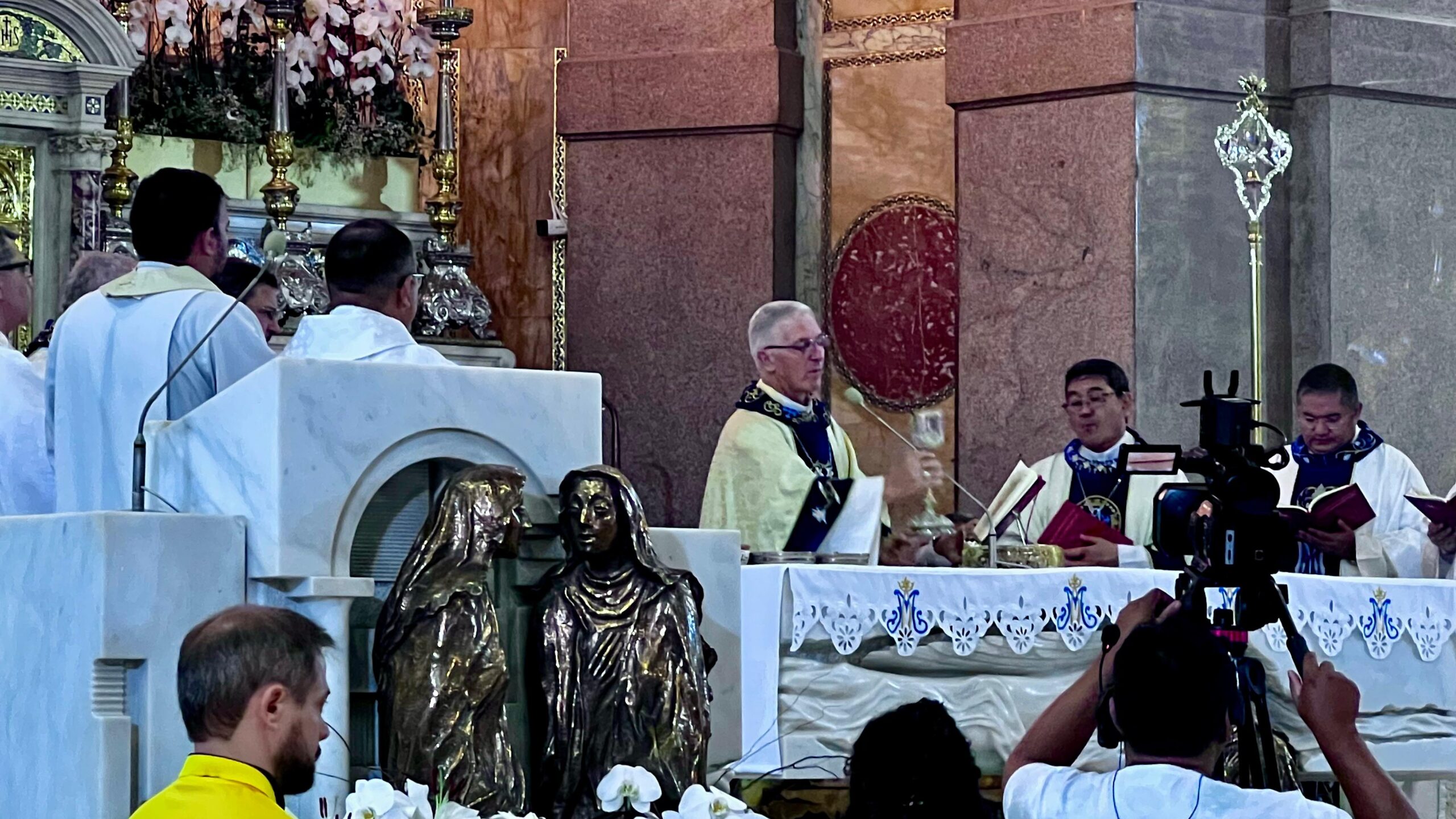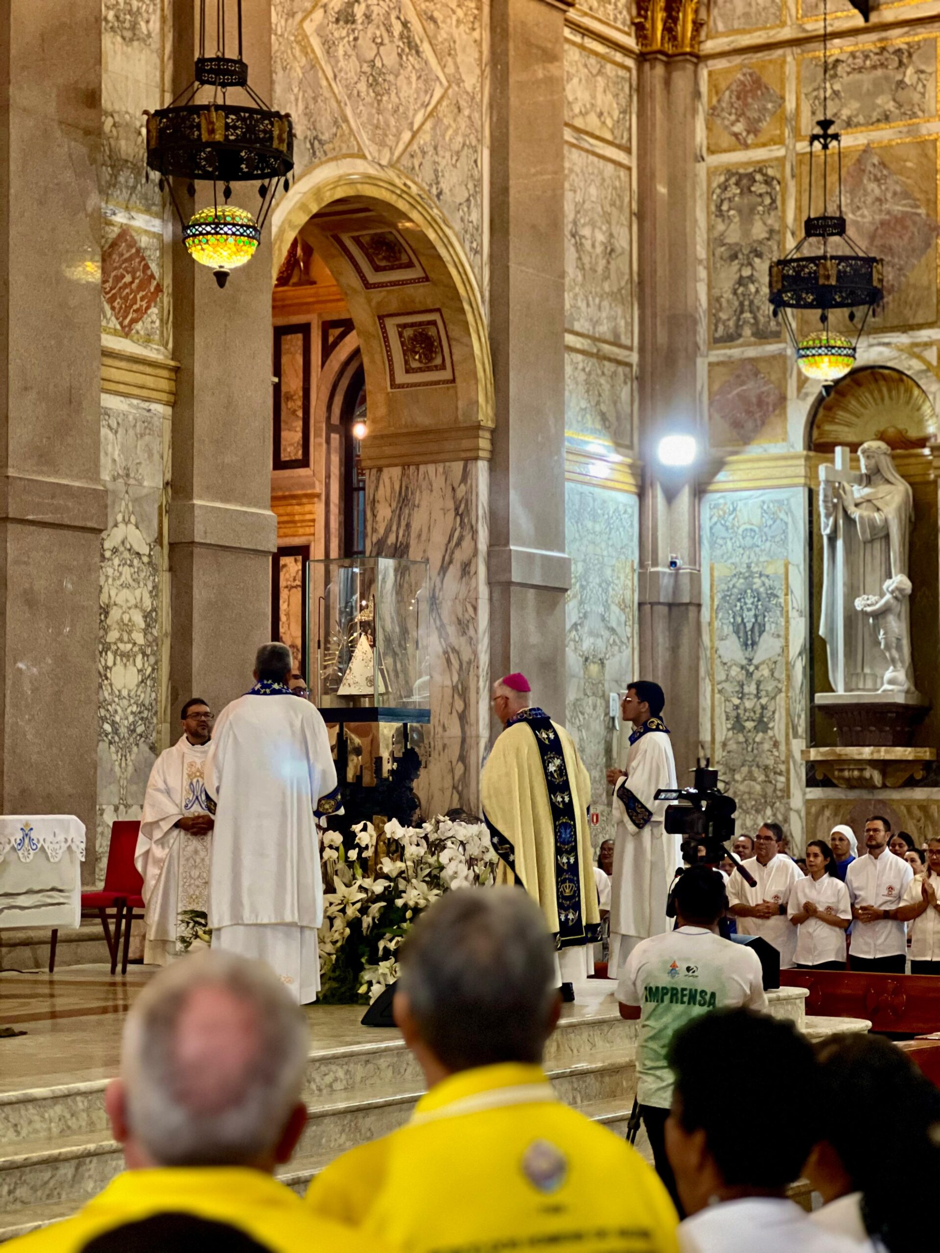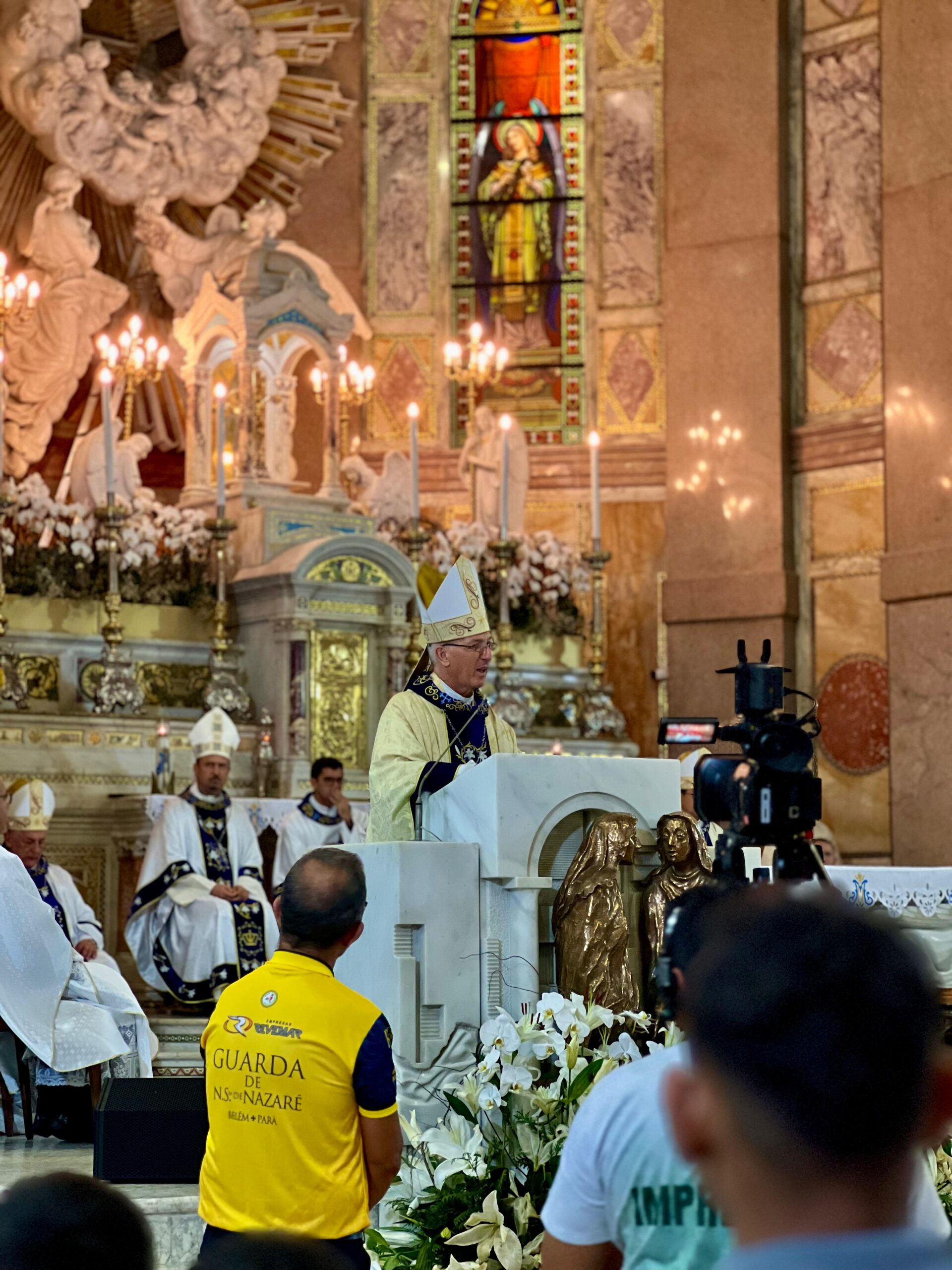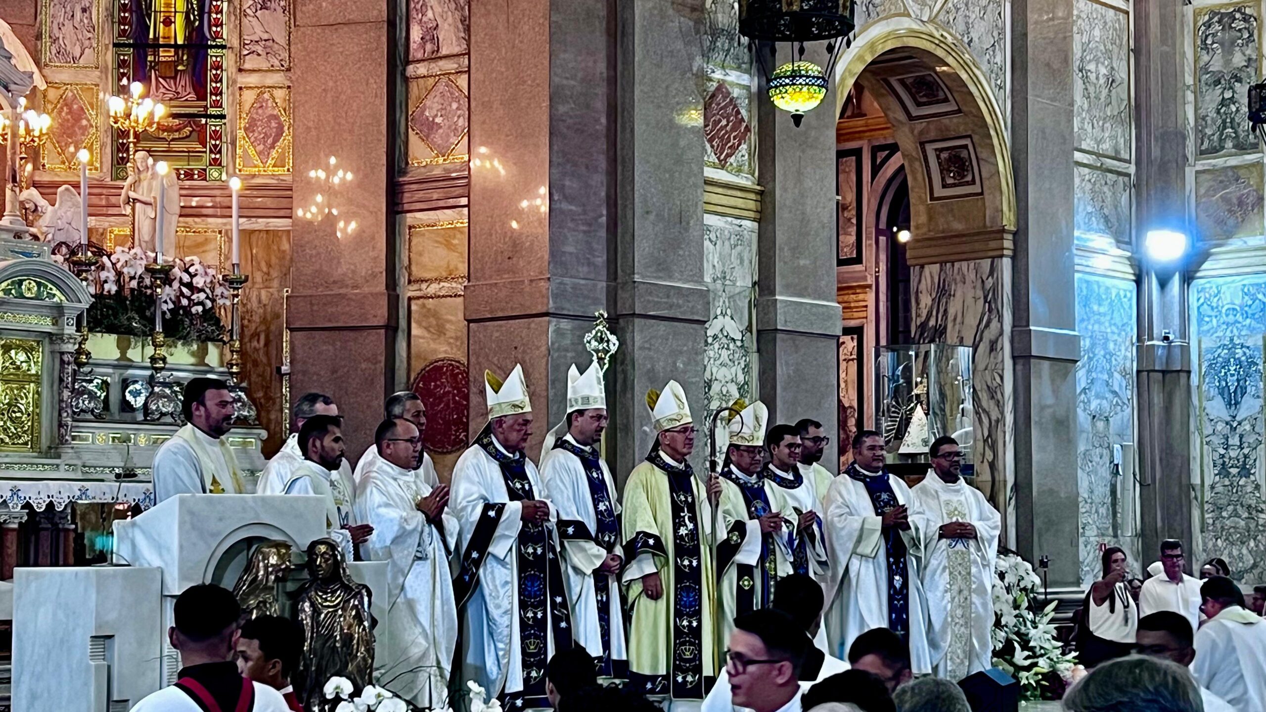 Dentro da Programação do Círio de Nazaré, a Arquidiocese de Belém recebe bispos de diversas localidades do Brasil para as celebrações litúrgicas do Círio de Nossa Senhora de Nazaré, na Basílica Santuário de Nazaré. Os convites são realizados pelo Arcebispo Metropolitano de Belém, visando a evangelização durante a Quinzena do Círio (Quadra Nazarena). Nesta segunda-feira (13/10), a Santa Missa na Basilica Santuário de Nazaré, foi presidida por Dom Irineu Roman, presidente do regional Norte 2 da Conferência Nacional dos Bispos do Brasil – CNBB e Arcebispo de Santarém, e concelebrada por Dom Julio Endi Akamine, Arcebispo Metropolitano de Belém, Dom Paulo Andreolli, Bispo Auxiliar da Arquidiocese de Belém, Dom Alberto Taveira Corrêa, Arcebispo Emérito de Belém, padres e diáconos presentes.