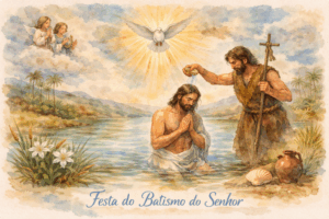Nas águas do Jordão – o Primogênito do Pai. Nas águas da Pia Batismal – as filhas e filhos adotivos do Pai, por meio do Filho amado. Numa verdadeira “comunhão, participação e missão”, para que o perdão e a festa da misericórdia se tornasse realidade. Eis a mais perfeita “armadilha” de Deus – unindo o céu e terra.