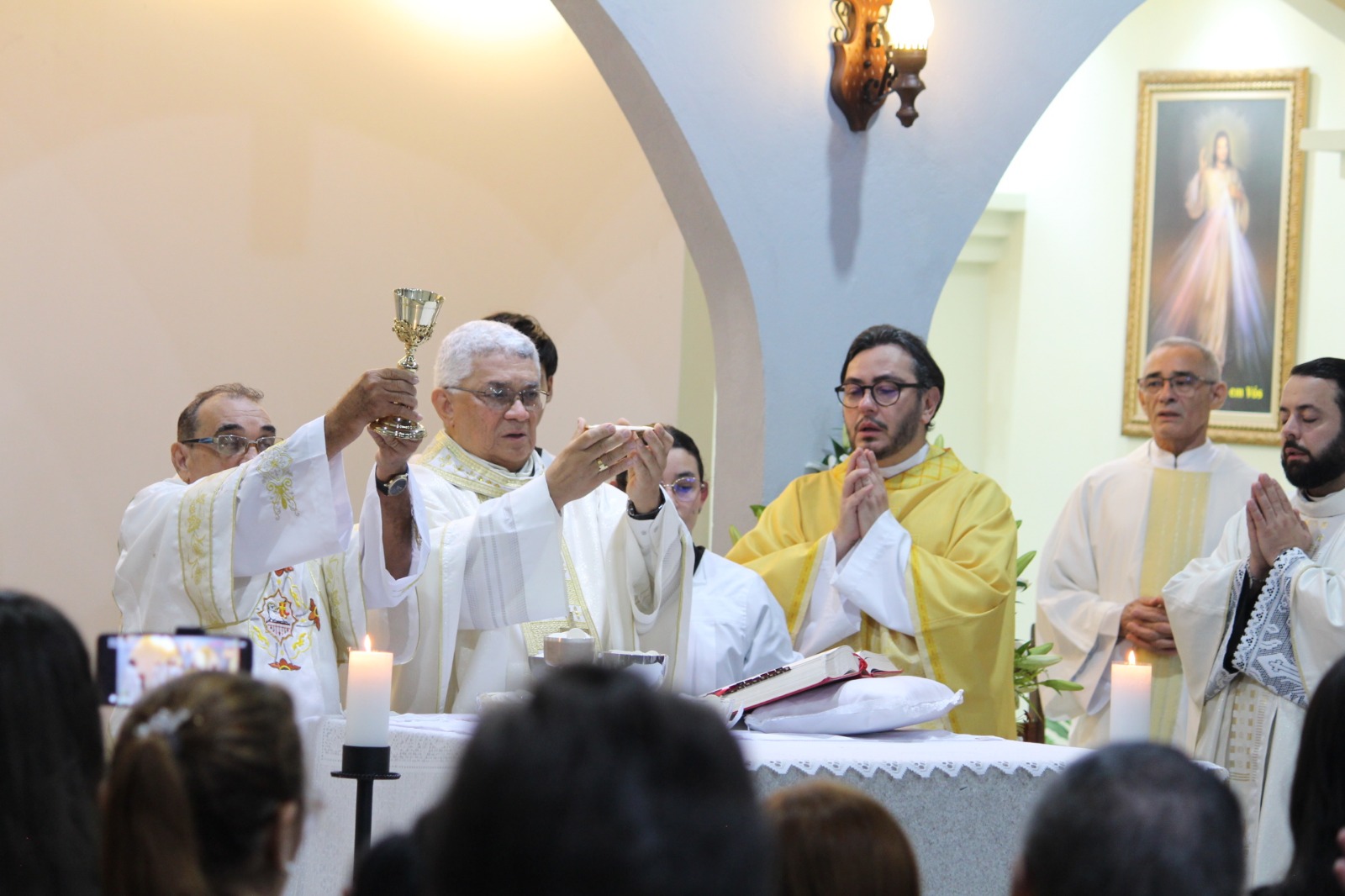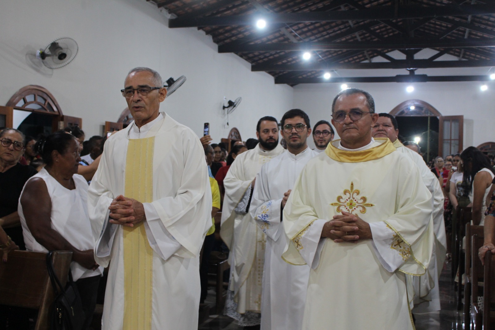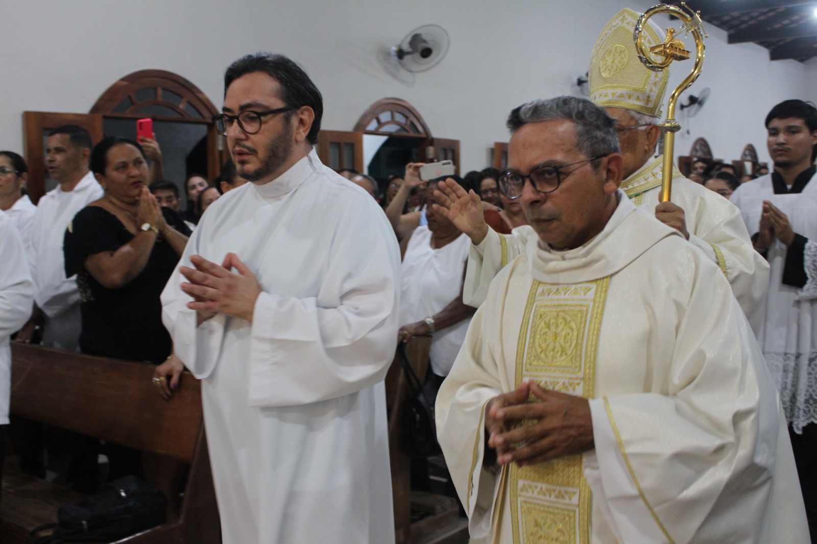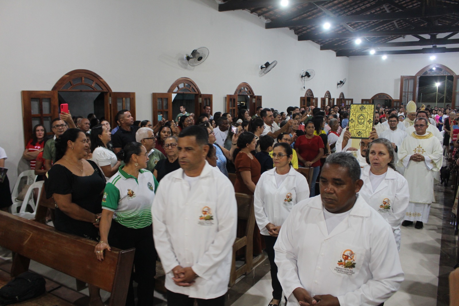 A celebração aconteceu às 19h, na Igreja Rainha da Paz, e foi presidida pelo bispo diocesano, Dom Raimundo Possidônio, reunindo sacerdotes, diáconos, lideranças pastorais e um grande número de fiéis, que participaram com fé e alegria deste marco para a Igreja local.