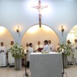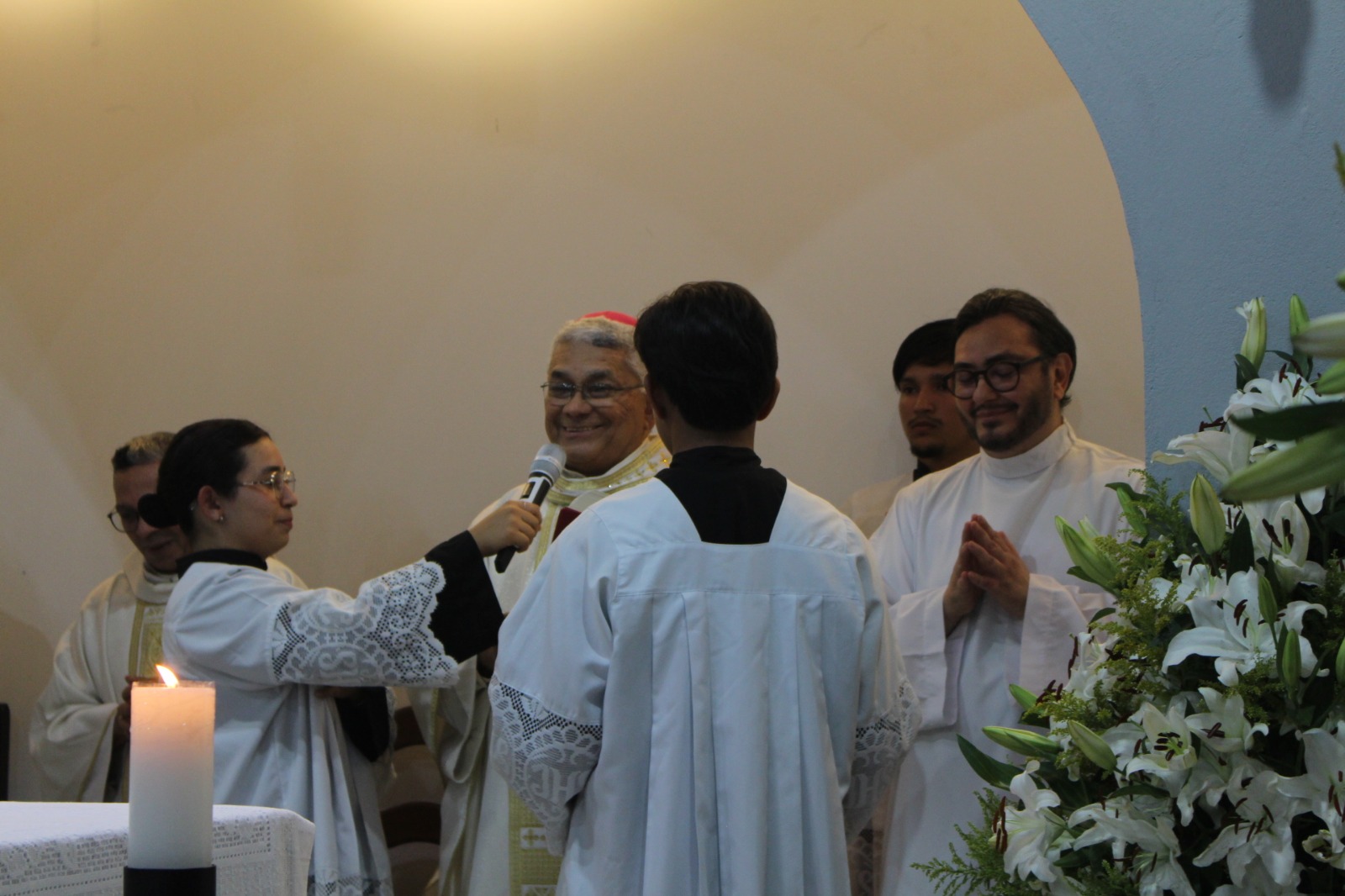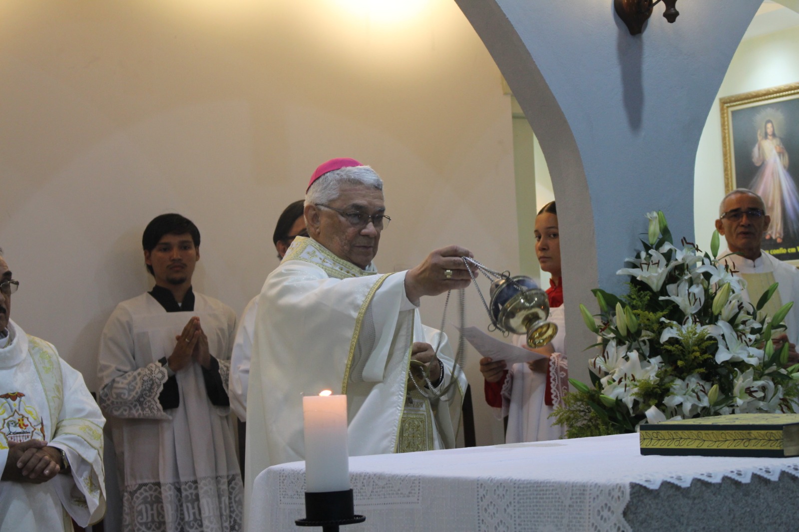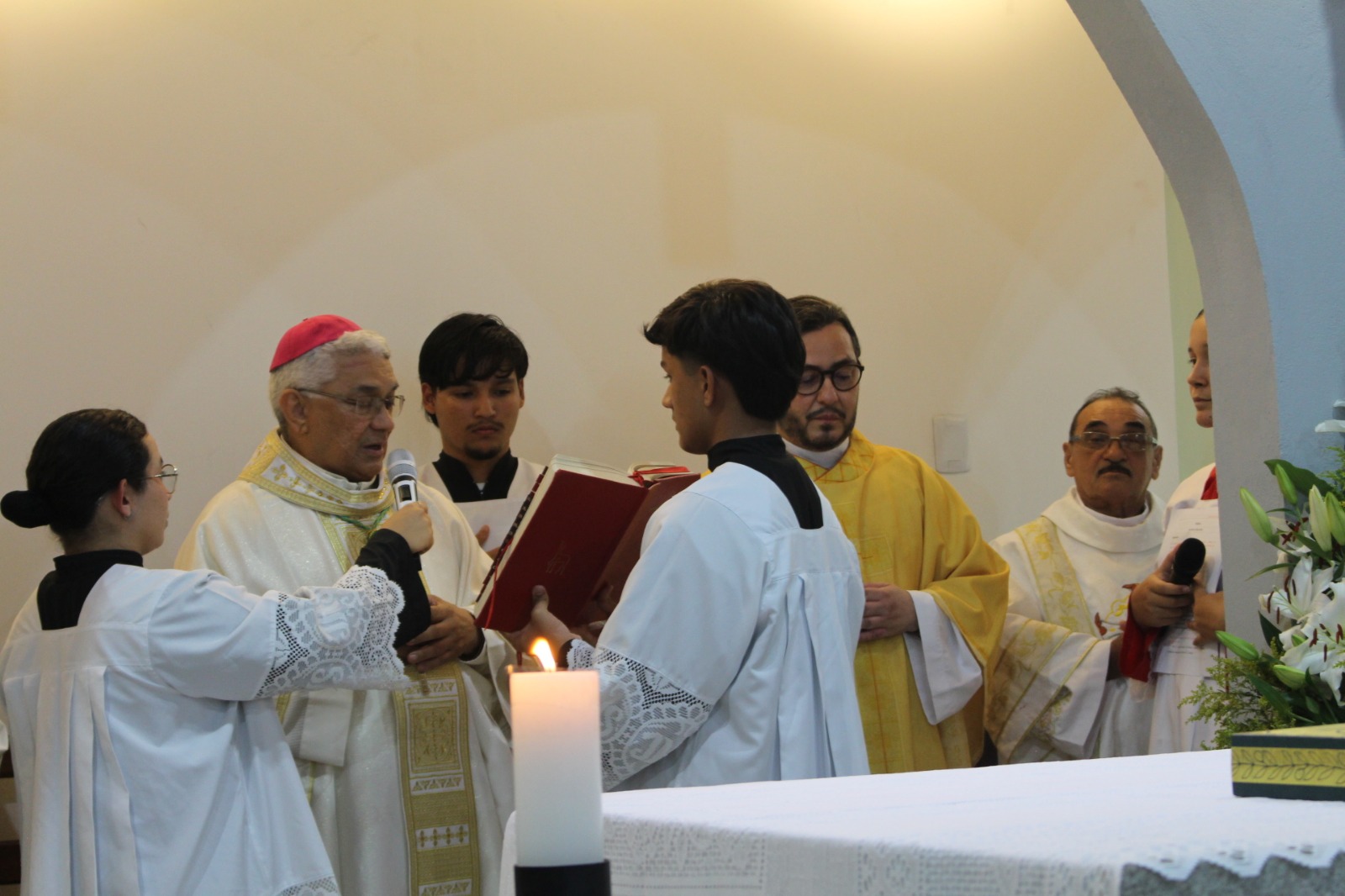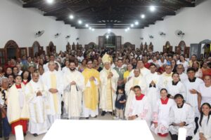 A celebração aconteceu às 19h, na Igreja Rainha da Paz, e foi presidida pelo bispo diocesano, Dom Raimundo Possidônio, reunindo sacerdotes, diáconos, lideranças pastorais e um grande número de fiéis, que participaram com fé e alegria deste marco para a Igreja local.