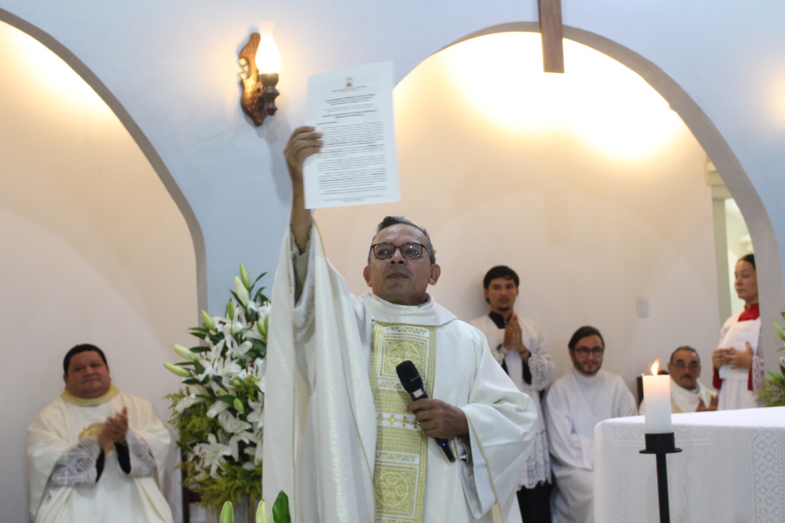 Durante a celebração, foi realizada a leitura oficial do Decreto de Ereção Canônica da nova paróquia, bem como da provisão de posse do pároco, conforme determina o Direito Canônico. Em seguida, aconteceram os ritos próprios da cerimônia, que culminaram com a posse canônica do primeiro pároco, o Pe. Sidney de Oliveira, oficialmente constituído como pastor da nova comunidade paroquial.