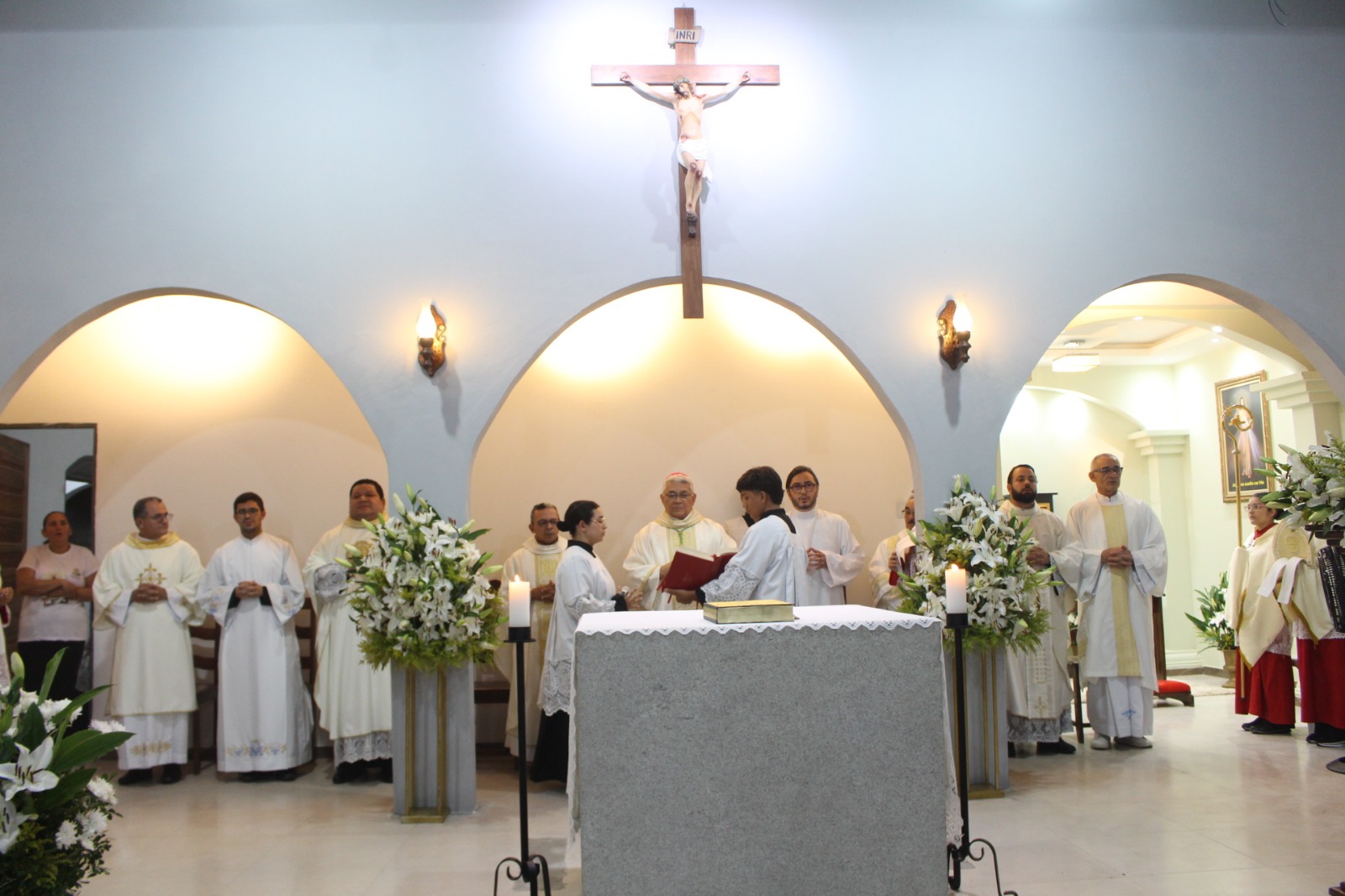 A celebração aconteceu às 19h, na Igreja Rainha da Paz, e foi presidida pelo bispo diocesano, Dom Raimundo Possidônio, reunindo sacerdotes, diáconos, lideranças pastorais e um grande número de fiéis, que participaram com fé e alegria deste marco para a Igreja local.