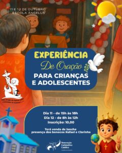 A Renovação Carismática Católica (RCC) da Arquidiocese de Santarém realiza nos dias 11 e 12 de outubro o Encontro de Experiência de Oração para Crianças e Adolescentes, um momento especial de espiritualidade, alegria e convivência cristã.