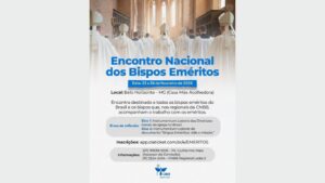 A Comissão Especial para os Bispos Eméritos da Conferência Nacional dos Bispos do Brasil (CNBB), em comunhão com o Regional Leste 2, convida e comunica com alegria a realização do Encontro Nacional dos Bispos Eméritos, que acontecerá entre os dias 23 e 26 de fevereiro de 2026, na Casa Mãe Acolhedora, em Belo Horizonte (MG).