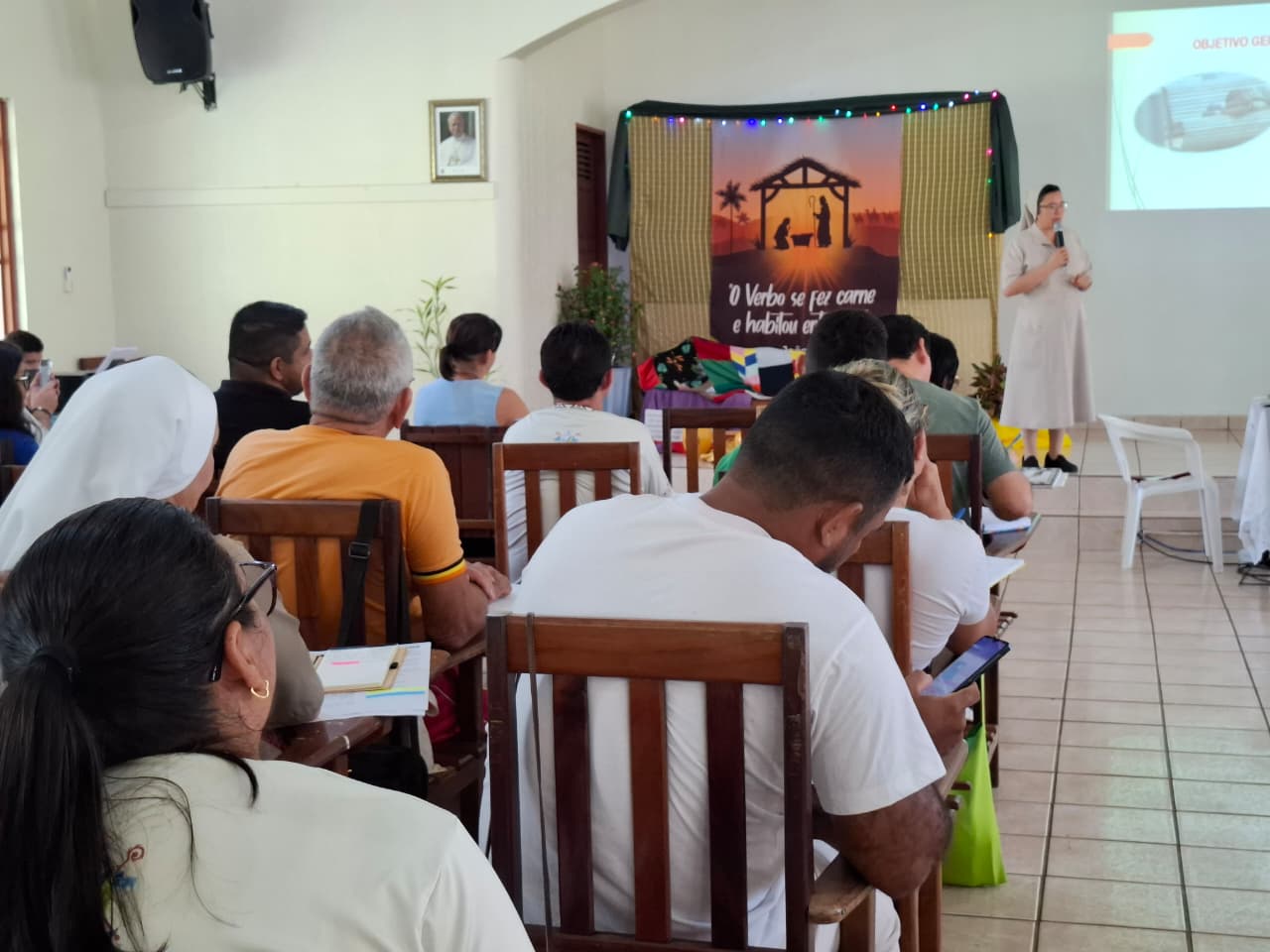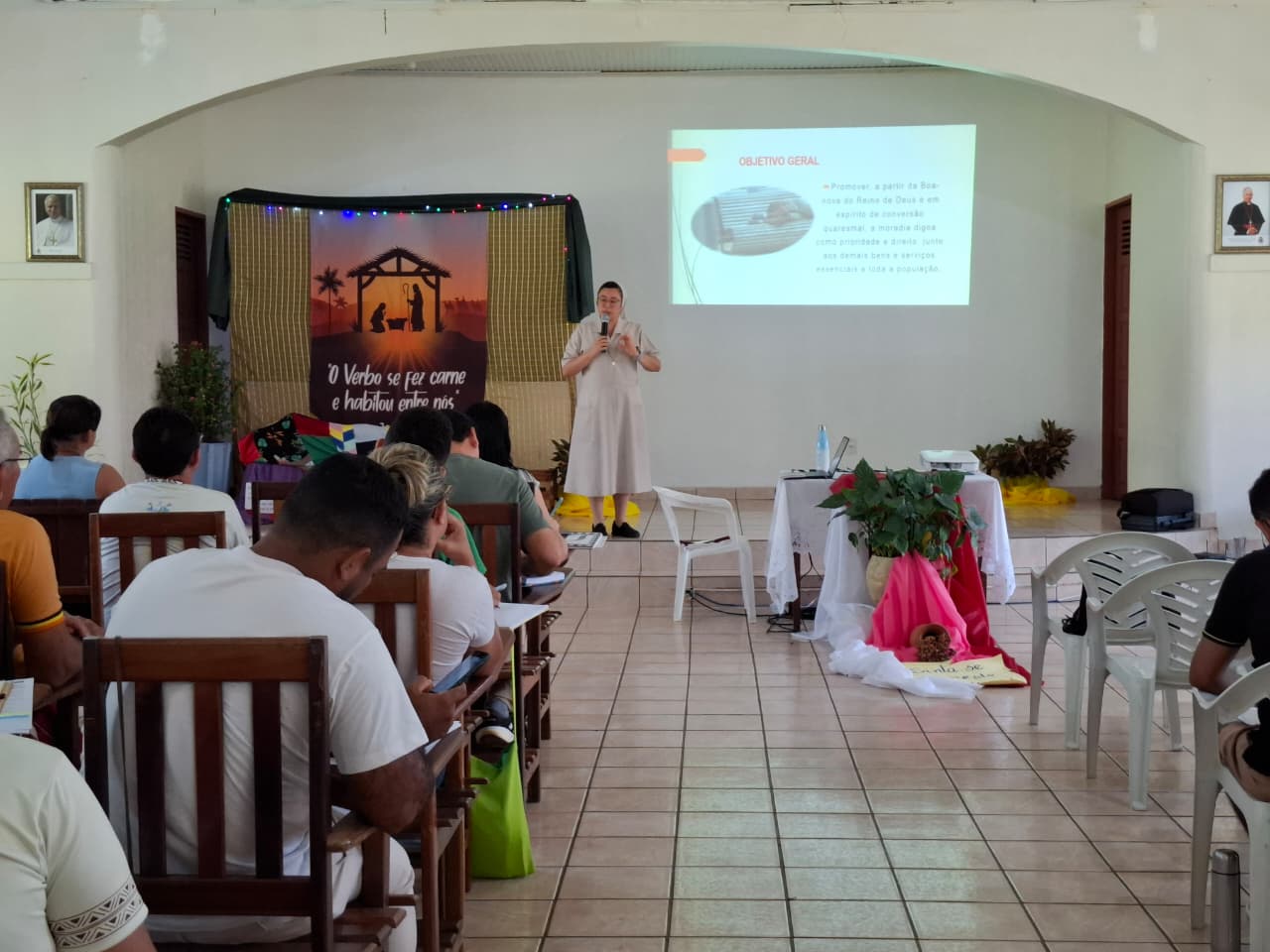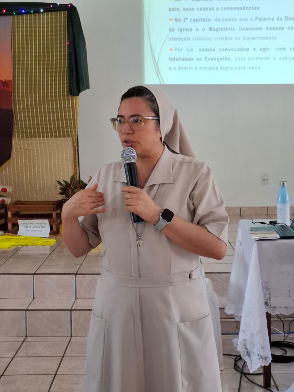A assessoria foi conduzida pela irmã Rejiane Dias, coordenadora das Campanhas do Regional Norte 2 da Conferência Nacional dos Bispos do Brasil (CNBB), que apresentou o conteúdo da Campanha a partir do método VER, ILUMINAR e AGIR. Segundo a assessora, o primeiro passo do método ajuda a compreender a realidade concreta que motiva a Campanha da Fraternidade deste ano. “Primeiro a gente precisa compreender, a partir do Ver, que é o primeiro capítulo do texto base, uma realidade muito gritante de desigualdade, que é a realidade da moradia da Campanha da Fraternidade 2026”, afirmou.