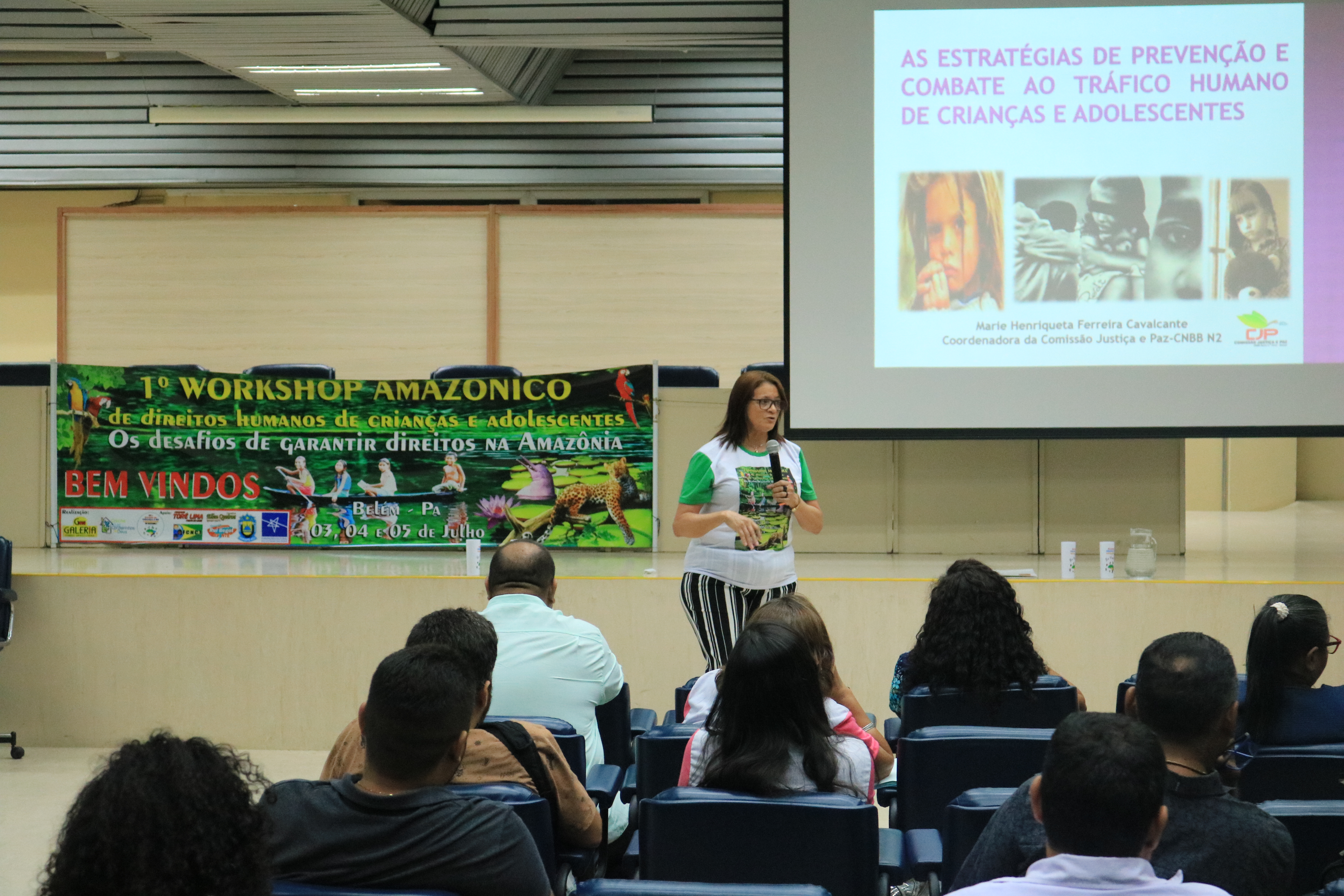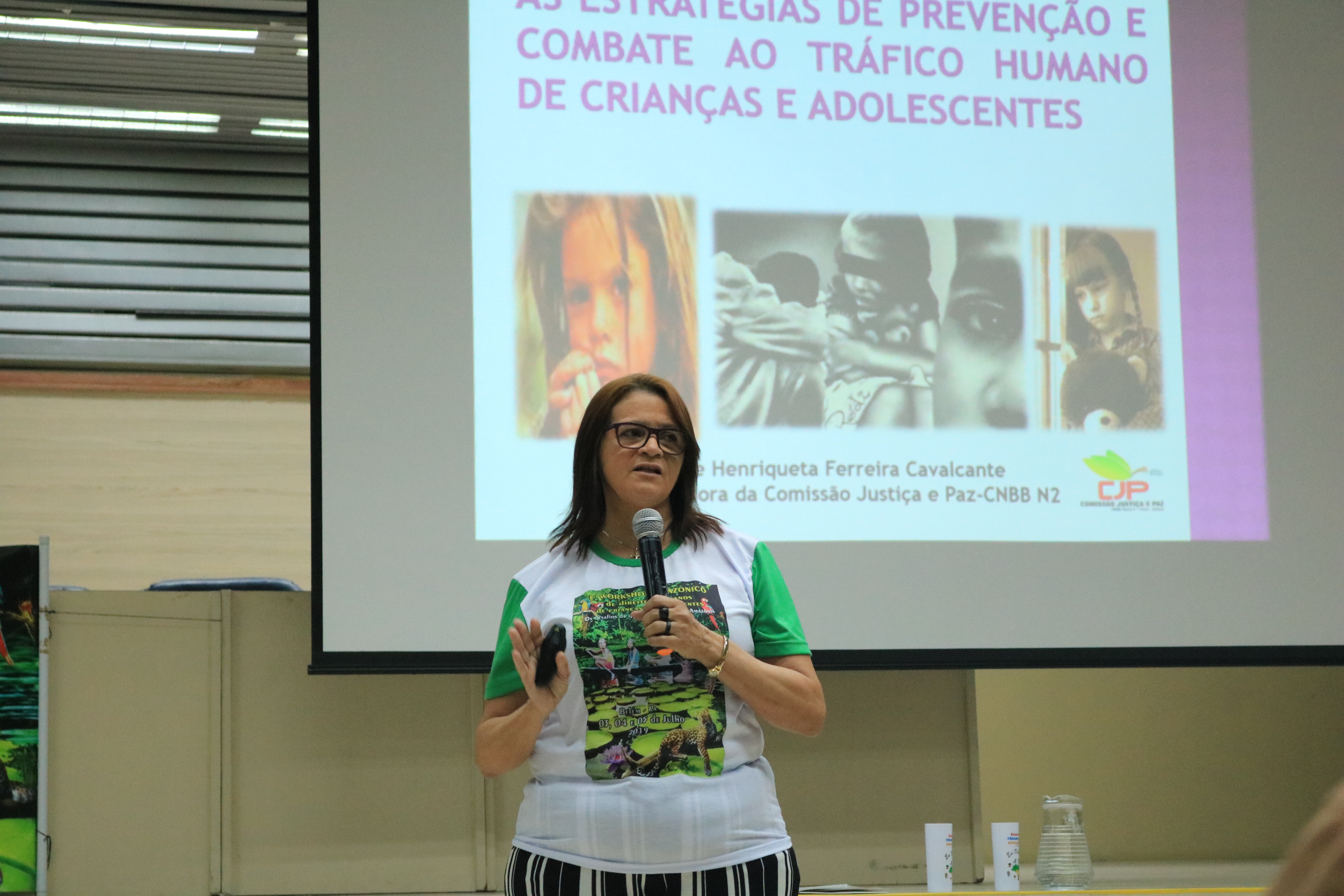 Na última quinta-feira, 04, a CJP esteve participando do “I Workshop de Direitos Humanos de Crianças e Adolescentes: os desafios de garantir direitos na Amazônia”. O evento foi promovido pela Associação de Conselheiros e Ex-Conselheiros Tutelares do Pará (Aconextel), e foi realizado no CENTUR, em Belém-PA. A coordenadora regional da CJP, Marie Henriqueta Cavalcante, palestrou sobre o tema: “as estratégias de prevenção e combate ao tráfico humano de crianças e adolescentes”. Na ocasião, ela defendeu uma maior sensibilização para esta pauta e destacou um pouco de sua experiência no trabalho da Comissão.