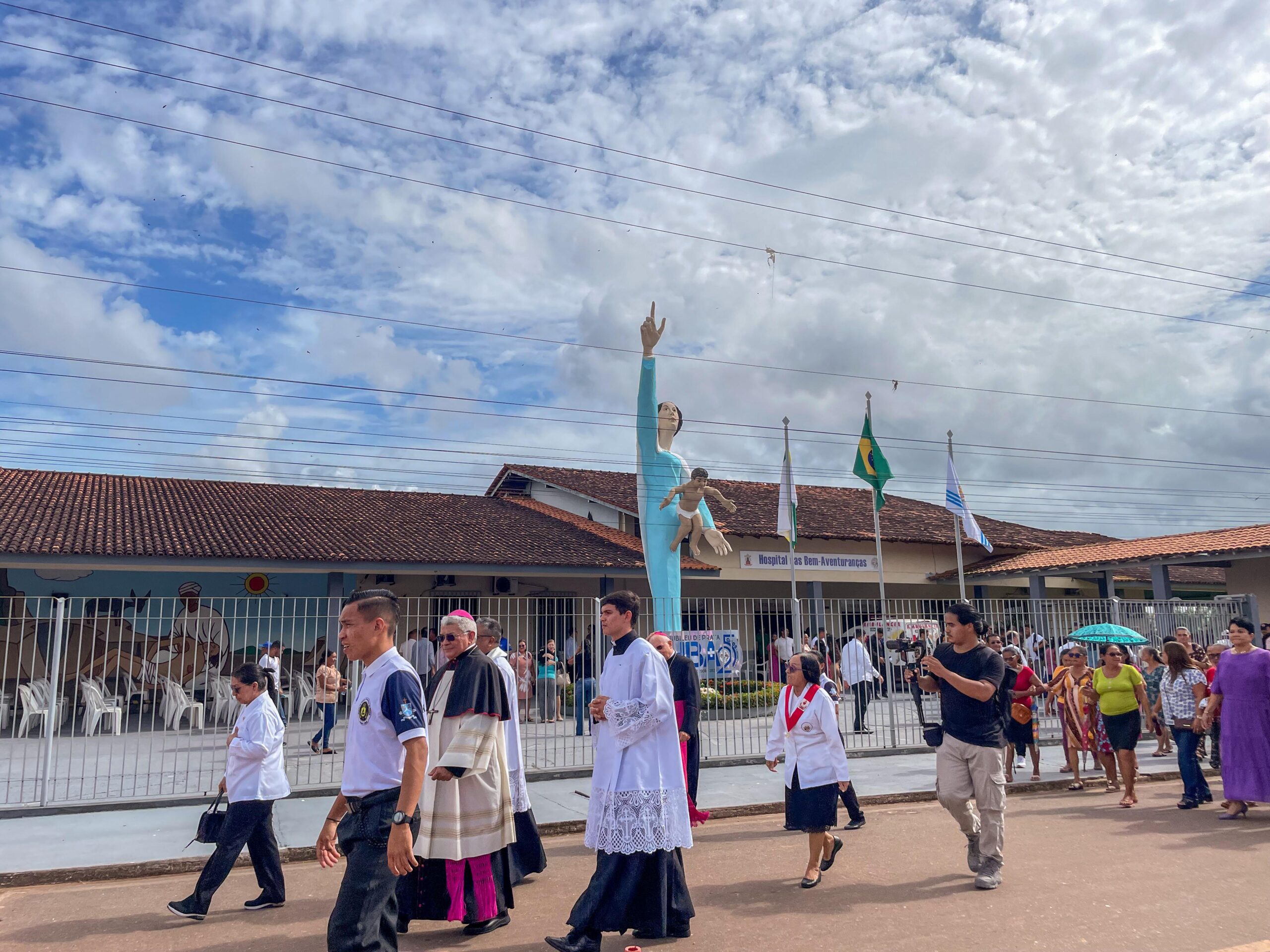 Finalizado a Cerimônia houve a procissão saindo do hospital até o Ginásio Municipal de Viseu, onde na chegada houve a Celebração Eucarística, presidida pelo Bispo Diocesano Dom Raimundo Possidônio e concelebrada pelos padres presentes no evento.