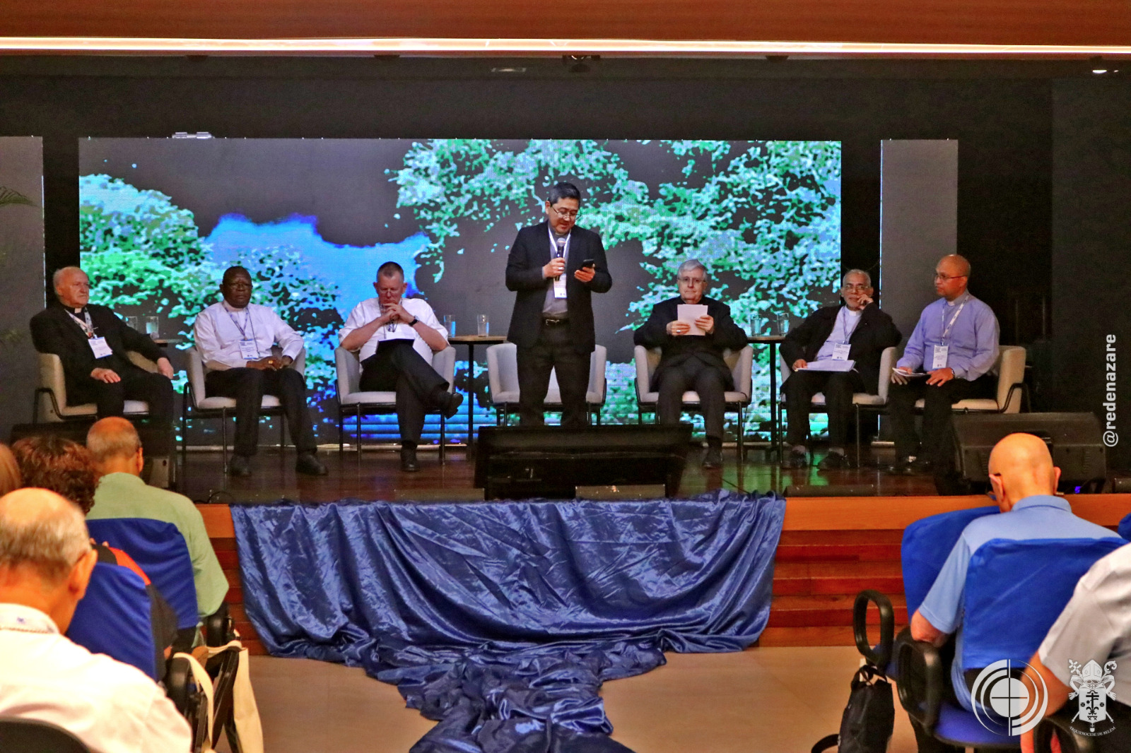 Durante o primeiro momento para a acolhida do Simpósio Dom Julio Akamine, Arcebispo de Belém, recebeu para uma interação com o público presente, o Núncio Apostólico no Brasil, Dom Giambattista Diquattro, Cardeal Dom Jaime Spengler presidente da CNBB e presidente do Conselho Episcopal para América Latina e Caribe; o Arcebispo de Goa e Damão na Índia e presidente das Conferências Episcopais da Ásia, Cardeal Felipe Neri; Arcebispo de Quinxassa e presidente da Federação das Conferências Episcopais da África e Madagascar, o cardeal Fridolin Ambongo; o Arcebispo de Belgrado, na Sérvia e vice-presidente do Conselho das Conferências Episcopais da Europa, cardeal Ladislav Nemet; e o Arcebispo de Arcebispo de Agaña, Guam na Ilha Pacífica de Gan e presidente da Conferência Episcopal do Pacífico, Dom Ryan Jimenez.
