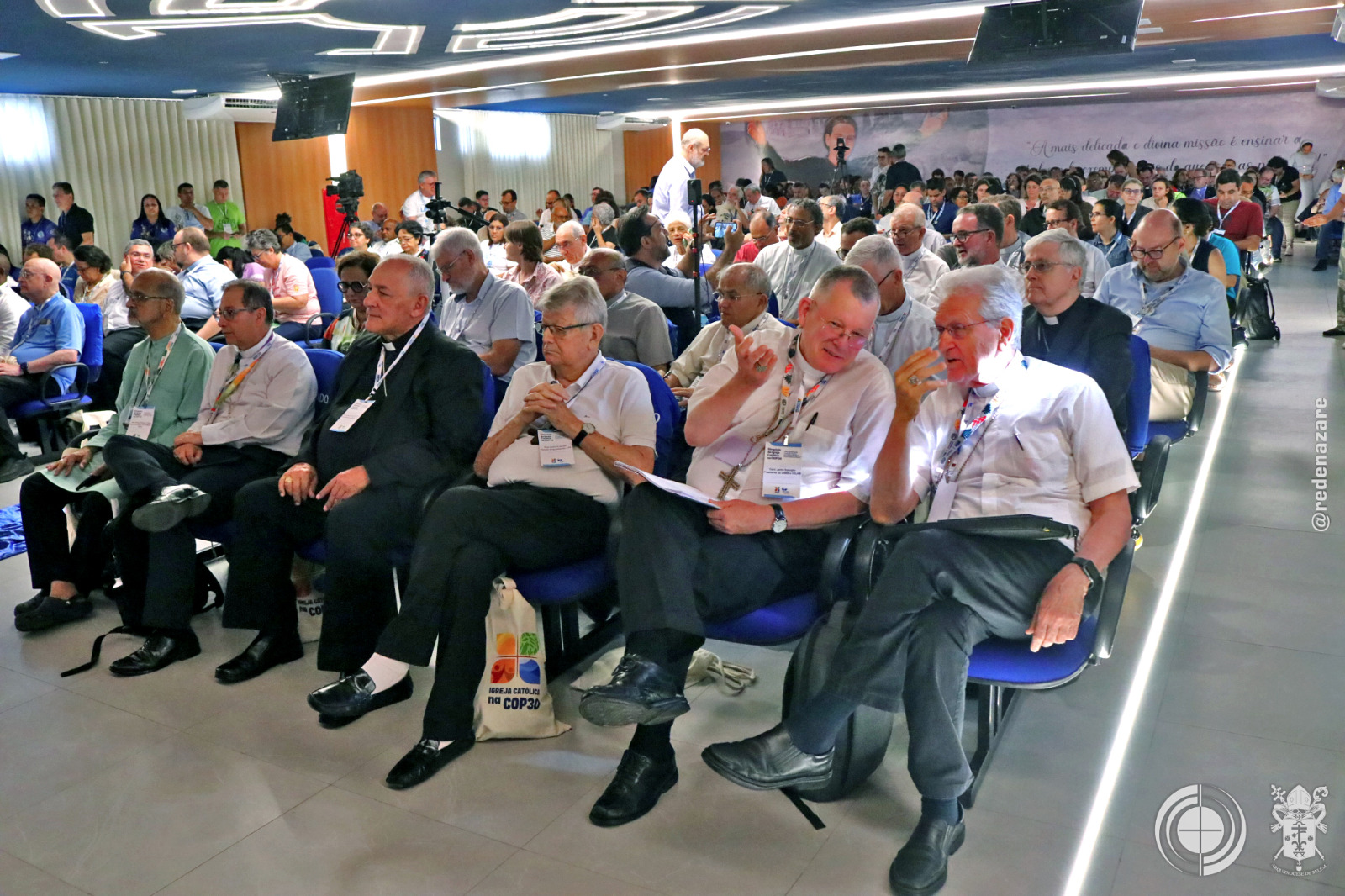 Durante o ‘Simpósio Internacional – Igreja Católica na COP 30’ no Colégio Santa Catarina de Sena, nesta quarta-feira (12/11). Após a coletiva de imprensa que contou com a participação dos cardeais Dom Jaime Spengler presidente da Conferência Nacional dos Bispos do Brasil (CNBB) e Dom Leonardo Steiner, Arcebispo de Manaus e presidente da Comissão Episcopal para a Amazônia, apresentaram a agenda da Igreja Católica no Brasil para a conferência climática, enfatizando a importância da ecologia integral, a defesa dos direitos dos povos originários e a necessidade de uma conversão ecológica global.
