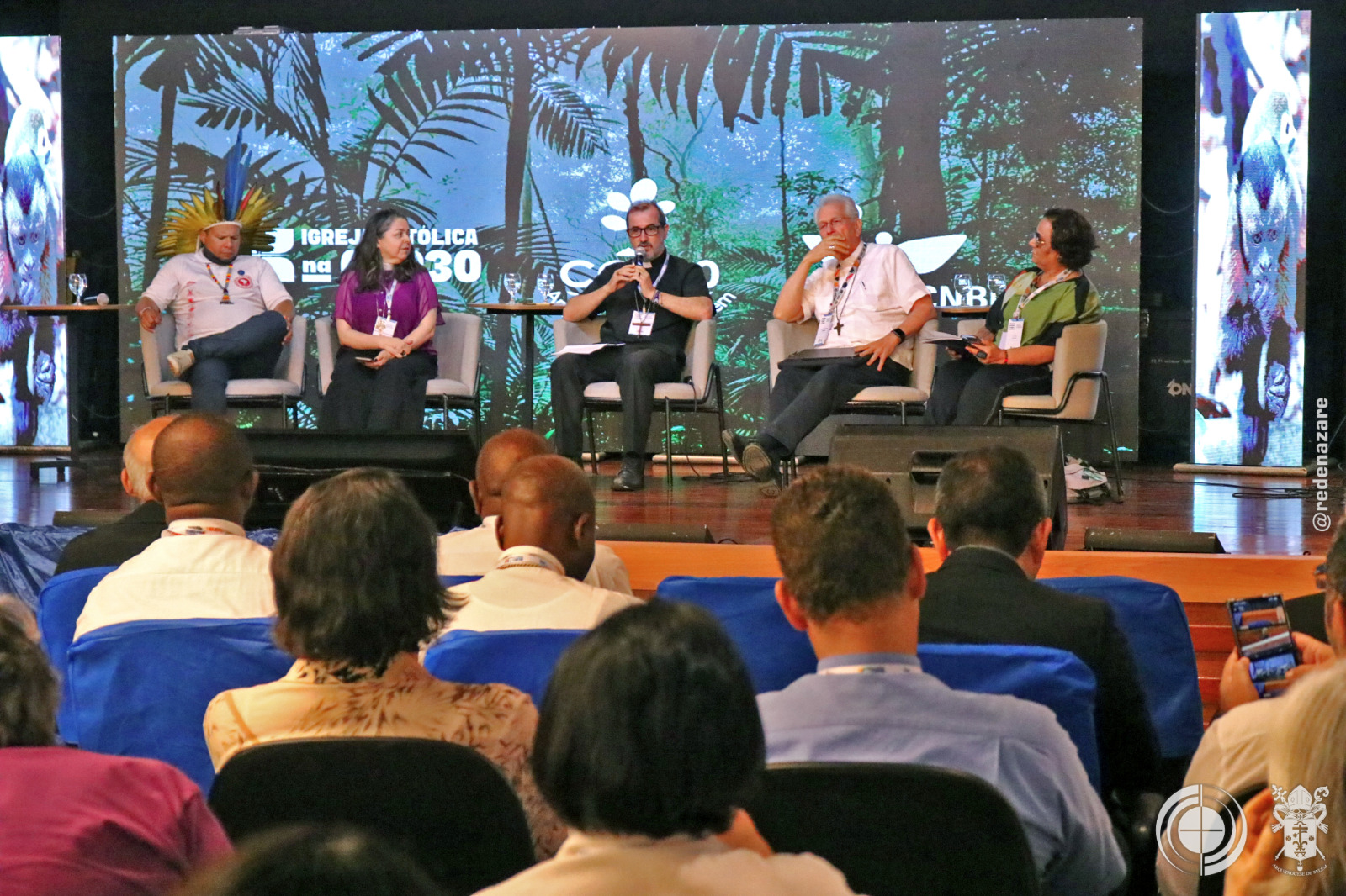 O encontro, que culminou em uma celebração mariana, reuniu quatro nomes importantes para o momento, que foram mediados pelo Dom Vicente de Paula Ferreira, bispo da Diocese de Livramento, na Bahia, e presidente da Comissão Especial para Mineração e da Ecologia Integral. Como explanadores estiveram presentes a bispa Marinês Rosa dos Santos Bassotto, Primaz da Igreja Episcopal Anglicana do Brasil, que falou sobre ‘Ecoespiritualidade, Missão Profética do Cristianismo na Amazônia’; o Cardeal Dom Leonardo Steiner, Arcebispo de Manaus e presidente da Comissão da Amazônia, da CNBB, que falou sobre ‘Caminhos da Ecologia Integral para Conversão Ecológica’; a doutora, professora, Ima Vieira, doutora em ecologia e pesquisadora titular do Museu Paraense, Emílio Goeldi, e assessora da presidência do Ministério da Ciência, Tecnologia e Inovação, que falou sobre Ciência, Economia e Política em busca da Justiça Climática’, e Cléber Caripuna, militante indígena em defesa dos povos originários e da Amazônia, coordenador executivo da articulação dos povos indígenas do Brasil, que apresentou o tema ‘A Presença dos Povos Originários da Amazônia Brasileira, com suas Lutas e Perspectivas’.