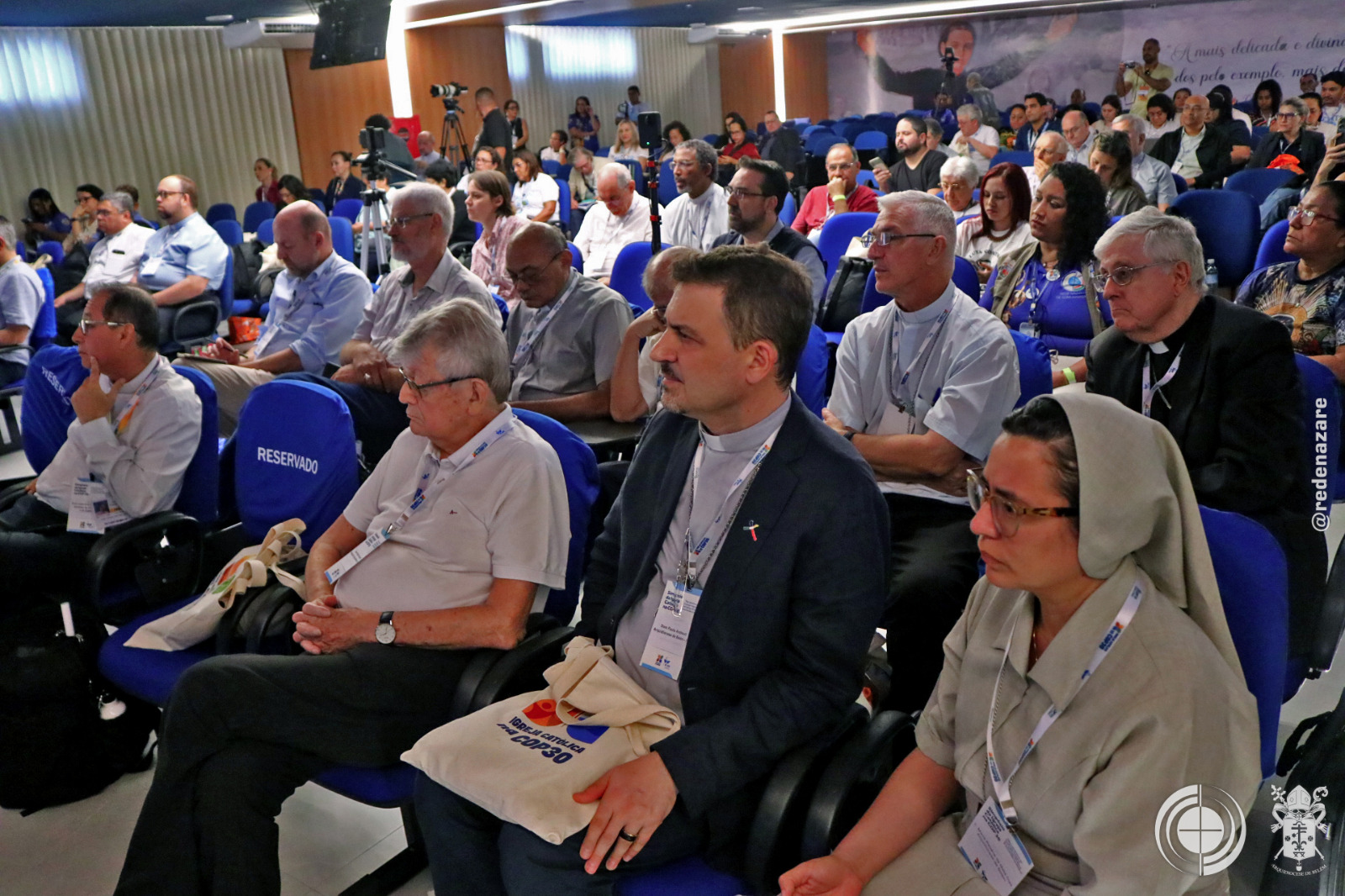 Durante o ‘Simpósio Internacional – Igreja Católica na COP 30’ no Colégio Santa Catarina de Sena, nesta quarta-feira (12/11). Após a coletiva de imprensa que contou com a participação dos cardeais Dom Jaime Spengler presidente da Conferência Nacional dos Bispos do Brasil (CNBB) e Dom Leonardo Steiner, Arcebispo de Manaus e presidente da Comissão Episcopal para a Amazônia, apresentaram a agenda da Igreja Católica no Brasil para a conferência climática, enfatizando a importância da ecologia integral, a defesa dos direitos dos povos originários e a necessidade de uma conversão ecológica global.