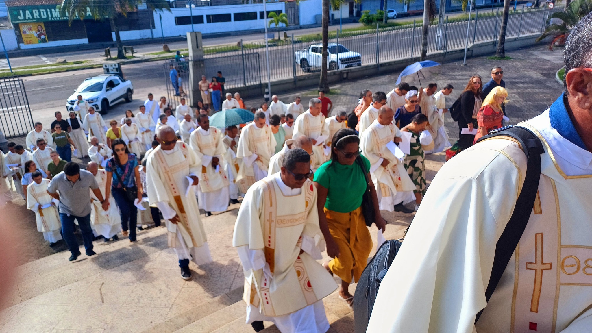 “A peregrinação é fator fundamental, e pôr-se a caminho, é típico de quem anda à procura do sentido da vida,…” ( ). Assim, na programação, os Diáconos, acompanhados de suas esposas e filhos, se concentraram na Praça do Cristo Redentor. Conduzidos por padre Ruzevel e o diácono Reginaldo, caminharam até a Catedral, rezando, cantando, com algumas paradas para a leitura de pequenos textos referentes ao Ano Santo.