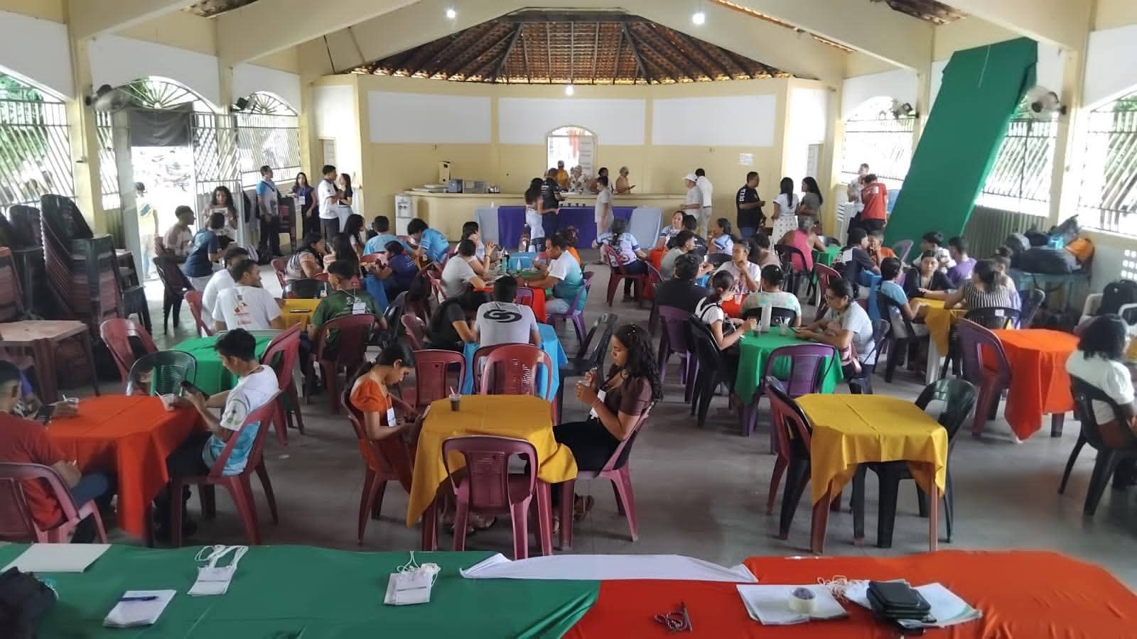 Durante os intervalos, os jovens puderam conhecer stands de congregações, pastorais, movimentos e serviços, como os Missionários Xaverianos, Lazaristas, Filhas da Caridade, Movimento Providetino, SAV da Diocese de Cametá e Pastoral da Juventude, que realizaram animação vocacional.