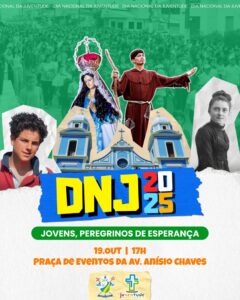 A juventude da Arquidiocese de Santarém se prepara para viver um dos momentos mais esperados do ano: o Dia Nacional da Juventude (DNJ), que neste ano acontece no domingo, 19 de outubro, das 17h às 22h, na Praça de Eventos da Avenida Anísio Chaves. O encontro reunirá jovens das paróquias, áreas pastorais e movimentos da cidade de Santarém em uma grande celebração de fé, alegria e compromisso com a esperança.