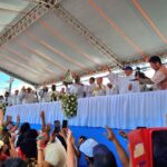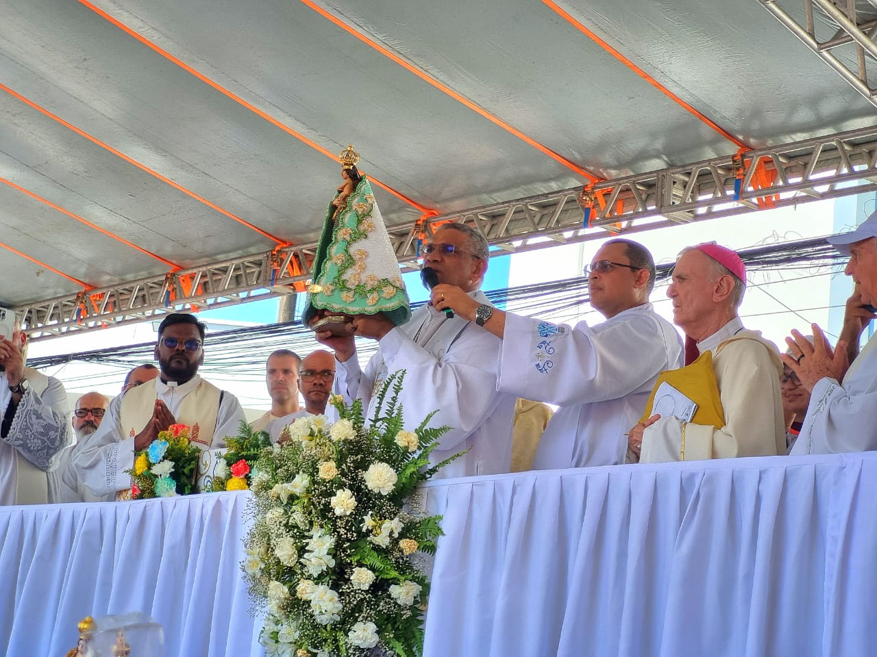 Ao dar as boas-vindas, no início, da Missa, Dom Antônio falou da alegria em ver a união de todos os presentes. “É uma alegria imensa estar aqui hoje, celebrando a fé e a união do nosso povo. Ver a devoção a Nossa Senhora de Nazaré e Nossa Senhora Aparecida, unidas em um só coração, é algo que nos enche de esperança. Agradeço a presença de todas as autoridades, líderes religiosos e a cada um de vocês que fazem desta festa um momento tão especial. Que possamos sempre educar nossas crianças na fé e seguir o exemplo de Maria, nossa mãe, que nos guia e protege. Que a paz e a justiça reinem em nossa terra, e que possamos alcançar a pátria definitiva, guiados pela luz de Cristo”.
