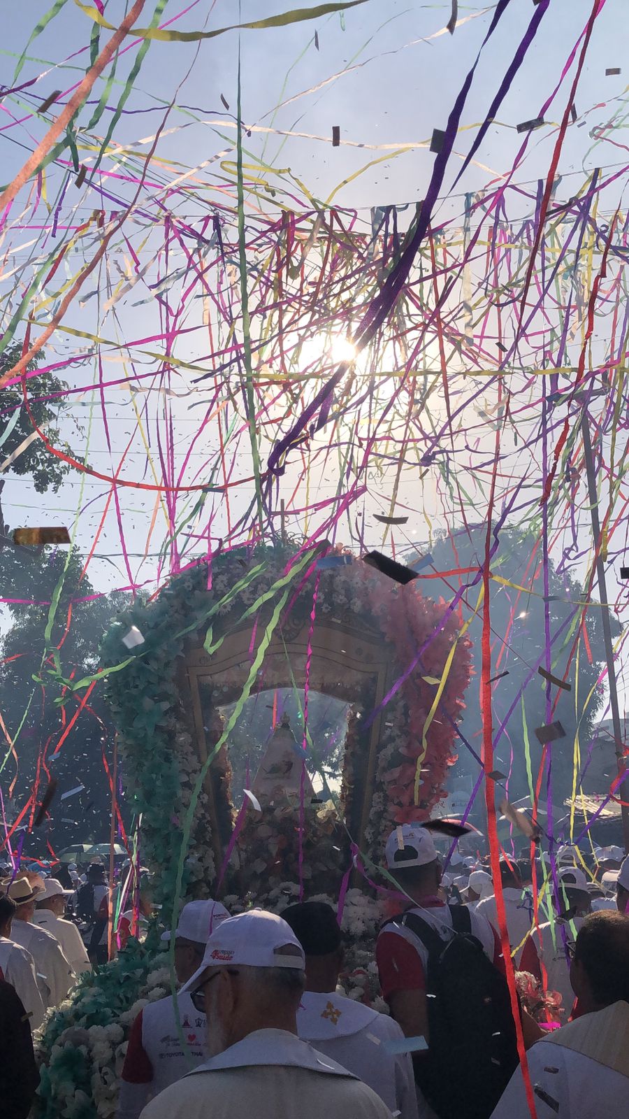 Quem nos acusa de idolatria, talvez, esteja preso às coisas terrenas, ao brilho efêmero do dinheiro. Nós, com o olhar fixo na imagem, elevamos nossos pensamentos a Maria, pedindo sua intercessão. Não somos tolos a ponto de nos apegarmos ao objeto, mas sábios o suficiente para reconhecer nele um símbolo da presença divina”, disse convidando os presentes a erguerem suas mãos em direção à imagem, conectando-os ao céu, e clamando “Maria, Santa e Gloriosa, interceda por nós!”
