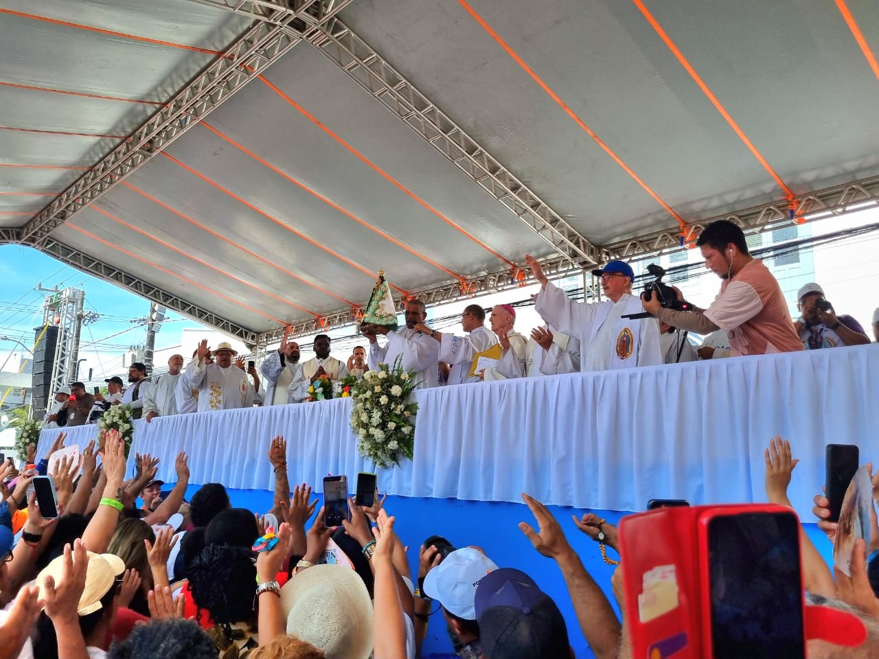 Ao dar as boas-vindas, no início, da Missa, Dom Antônio falou da alegria em ver a união de todos os presentes. “É uma alegria imensa estar aqui hoje, celebrando a fé e a união do nosso povo. Ver a devoção a Nossa Senhora de Nazaré e Nossa Senhora Aparecida, unidas em um só coração, é algo que nos enche de esperança. Agradeço a presença de todas as autoridades, líderes religiosos e a cada um de vocês que fazem desta festa um momento tão especial. Que possamos sempre educar nossas crianças na fé e seguir o exemplo de Maria, nossa mãe, que nos guia e protege. Que a paz e a justiça reinem em nossa terra, e que possamos alcançar a pátria definitiva, guiados pela luz de Cristo”.