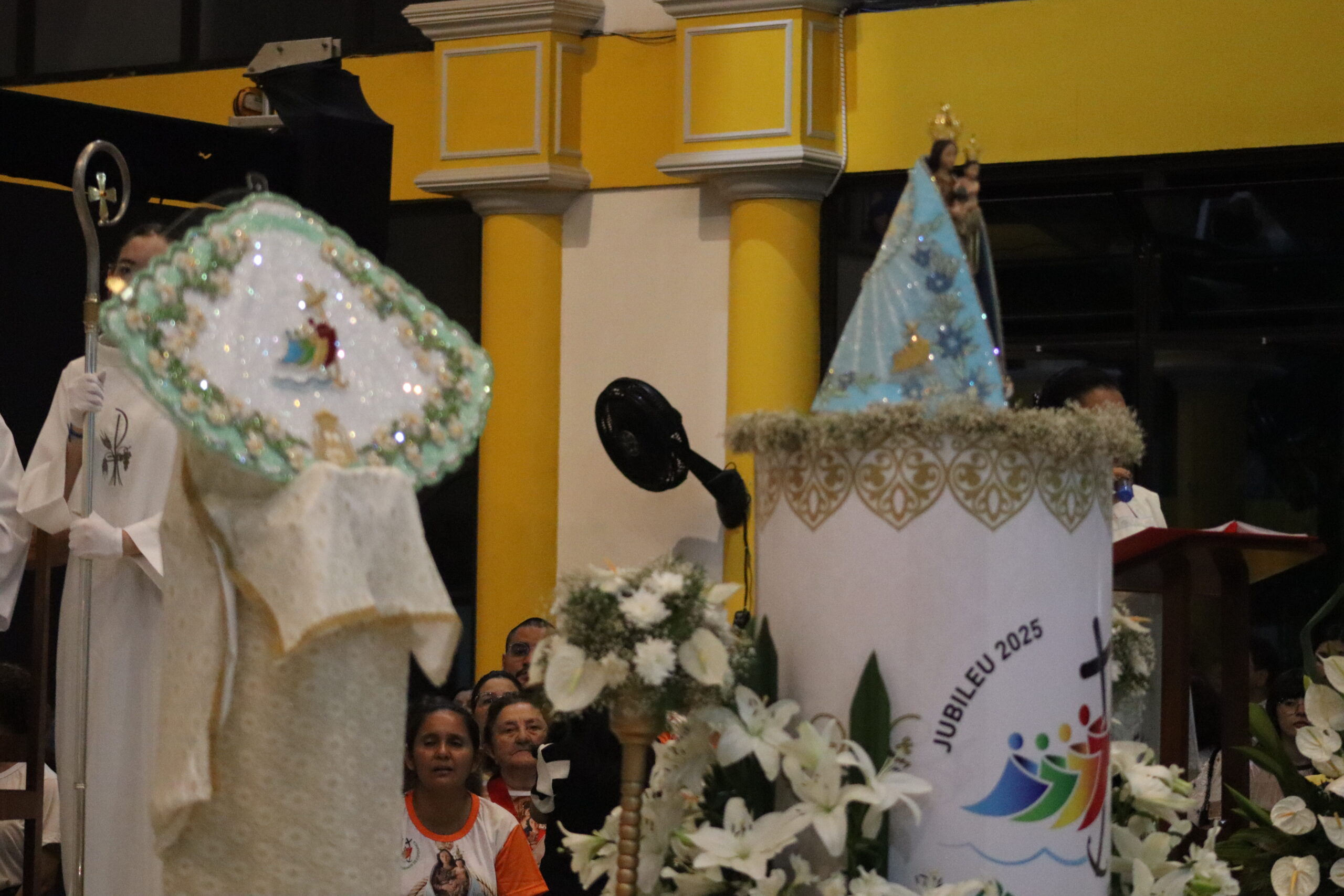 O brasão no manto marca uma nova era no Círio de Nazaré, expressando a missão do bispo como servo consagrado à verdade e ao amor “Por eles me consagro!” (Jo 17,19)