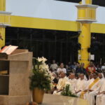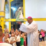 Em um momento de profunda reflexão, Dom Antonio conduziu a comunidade a uma compreensão mais profunda da coreografia apresentada, revelando a essência da jornada da Igreja através dos tempos. “Esta coreografia tem que ser entendida”, disse o bispo. “As crianças, ao levantarem as palavras, representam o mar, a história do mundo com seus temas, dúvidas e ondas. Mas nós, como Igreja, possuímos a âncora da fé, que nos sustenta em meio às tempestades. A âncora da fé nos sustenta, a âncora da esperança nos sustenta, e a âncora do amor nos sustenta. São essas virtudes que fazem a Igreja caminhar, superando os problemas e continuando sua história rumo à vida eterna”.