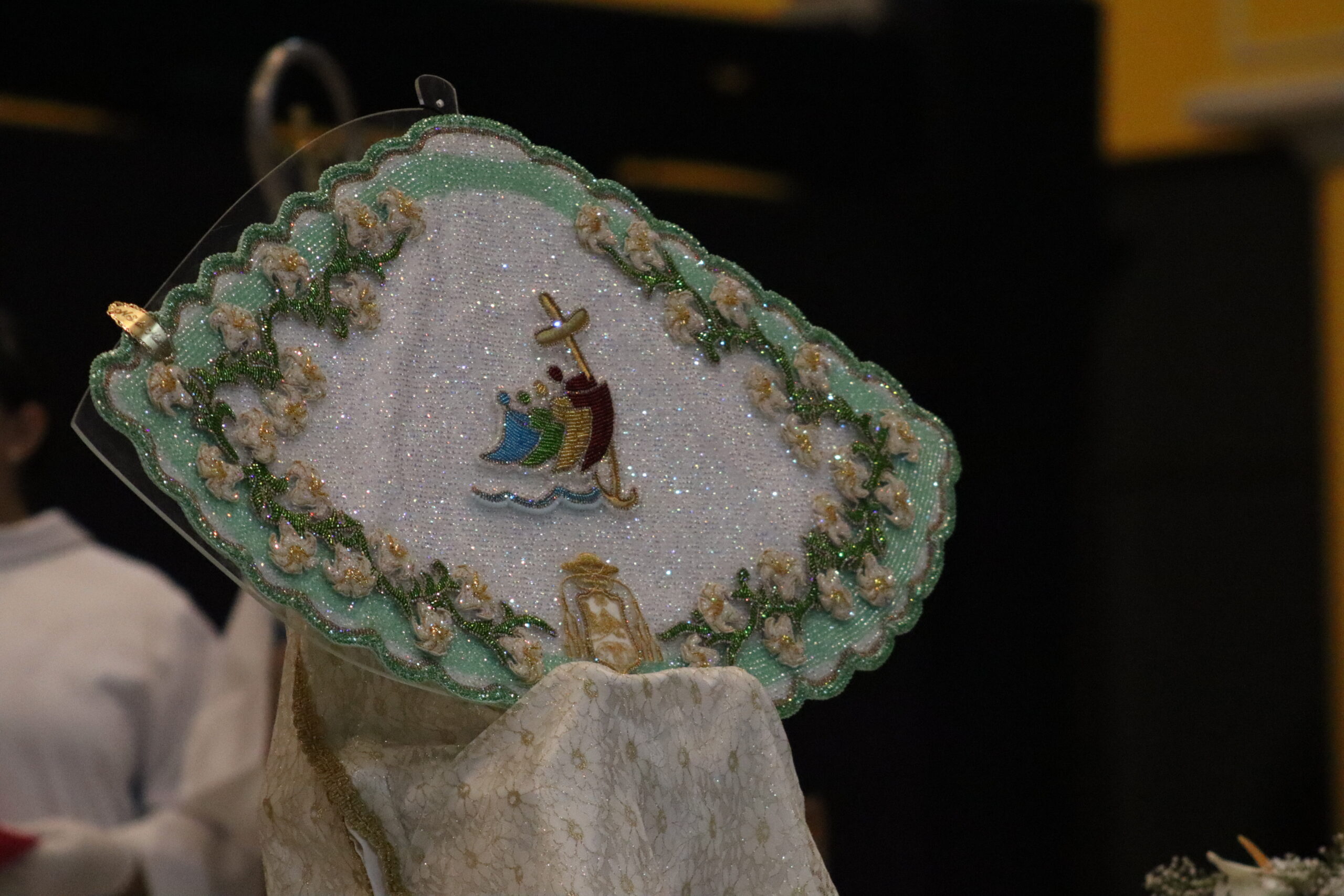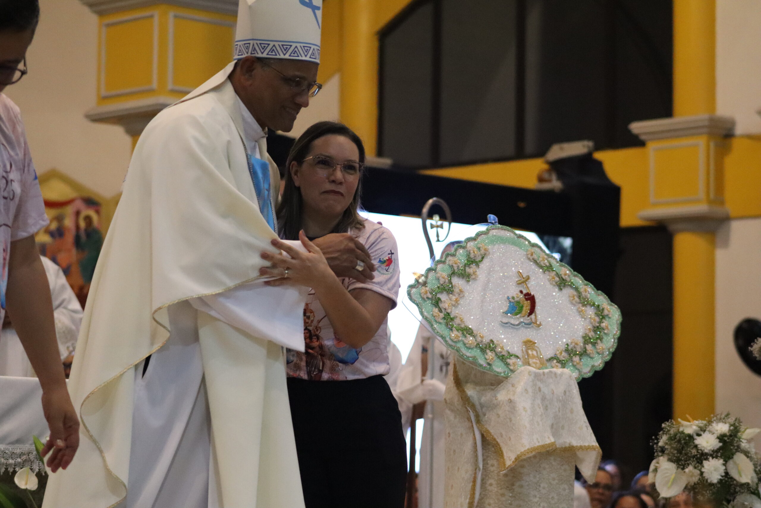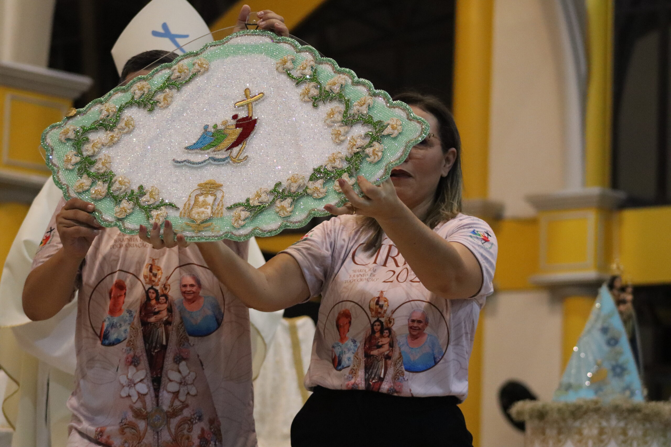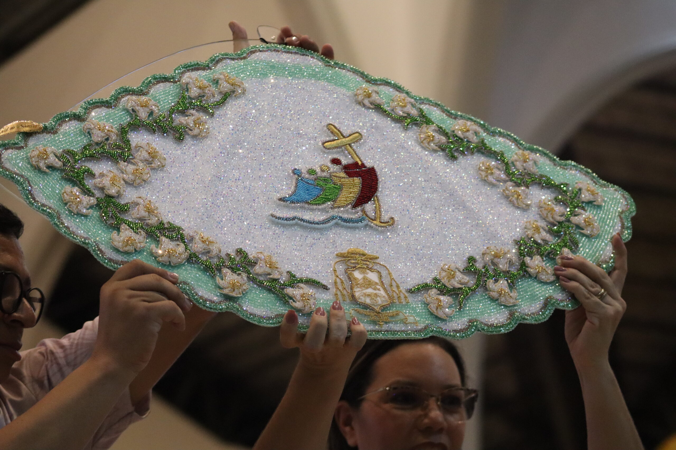 O brasão no manto marca uma nova era no Círio de Nazaré, expressando a missão do bispo como servo consagrado à verdade e ao amor “Por eles me consagro!” (Jo 17,19)