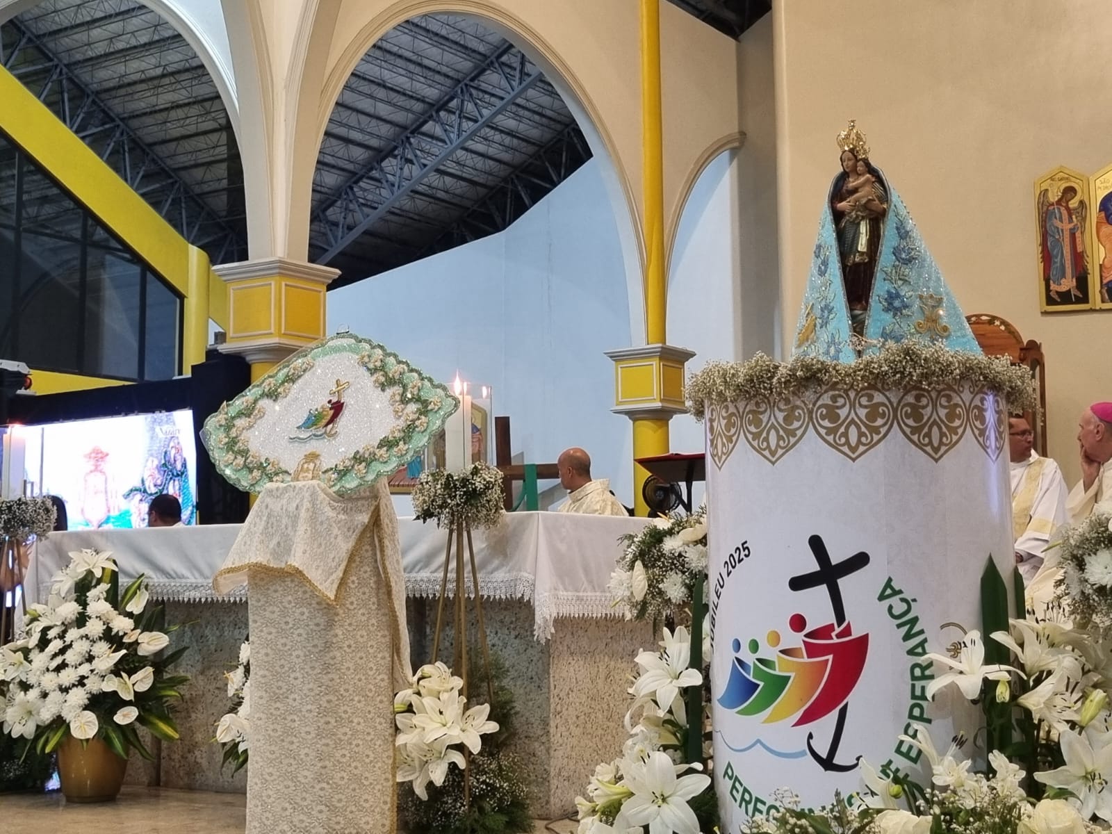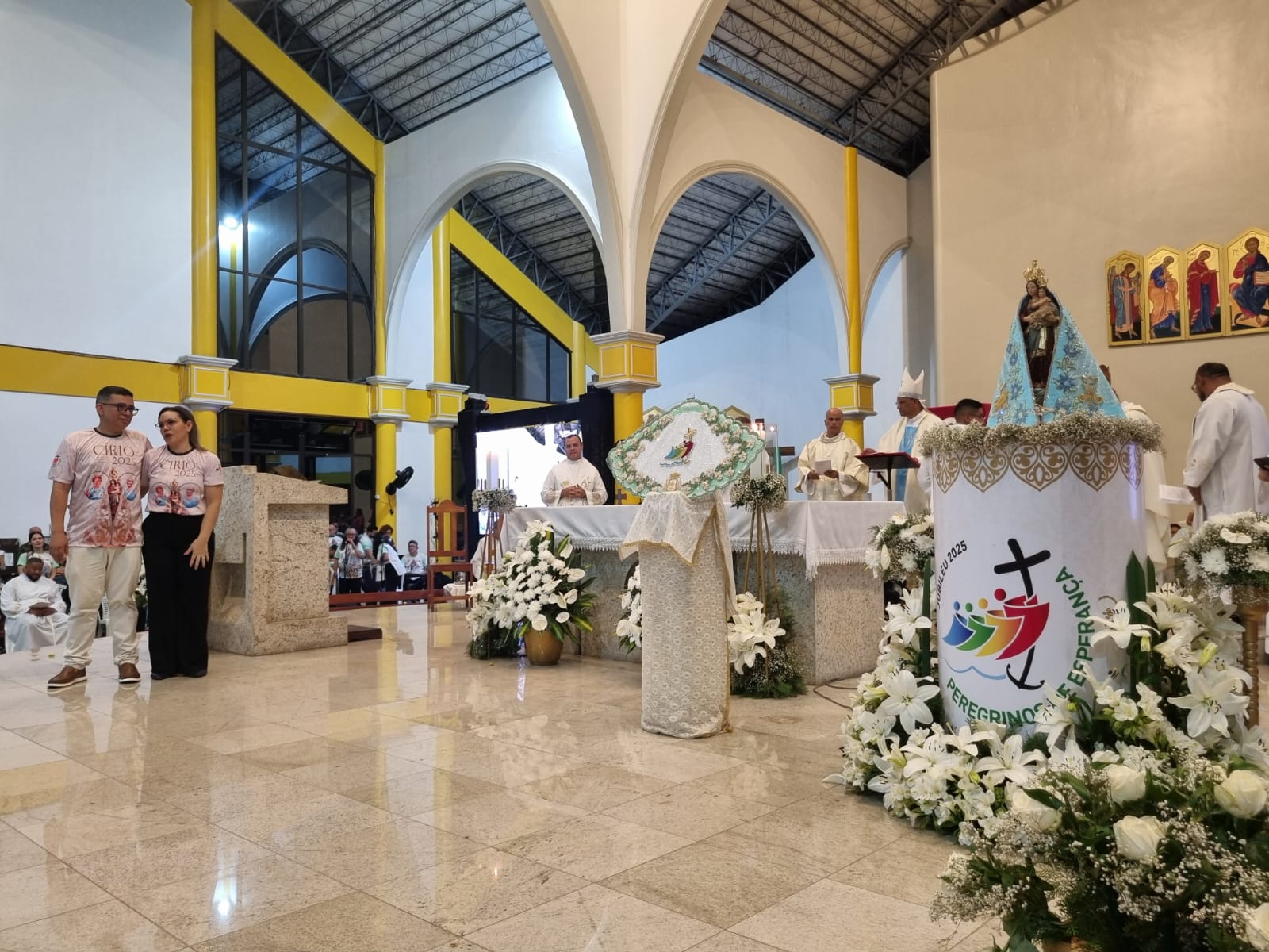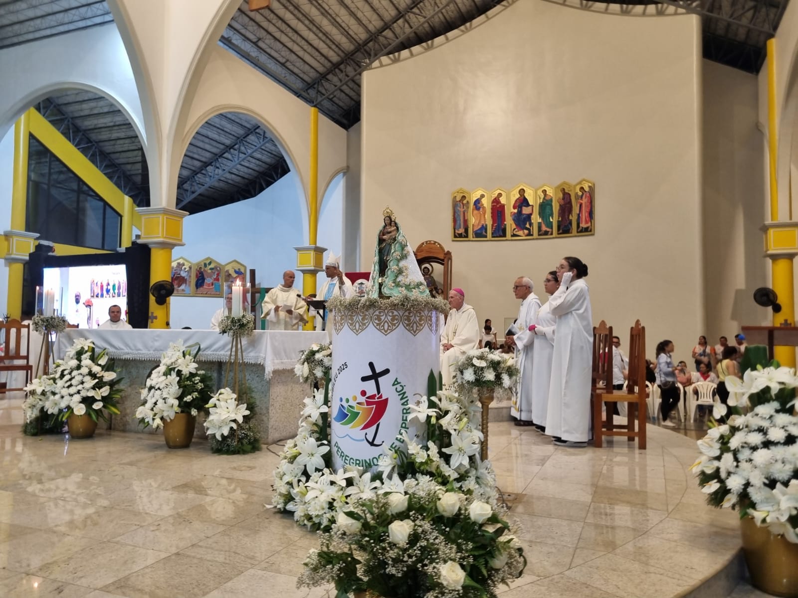 Crianças em homenagem ao Ano Jubilar fizeram o cortejo da entrada da imagem de Nossa Senhora de Nazaré onde levavam com elas as palavras Fé, Esperança e Amor e o símbolo do ‘Jubileu da Esperança’ representado por crianças caracterizadas com as vestimentas coloridas dos peregrinos carregando a cruz da esperança, observada na logo do jubileu.