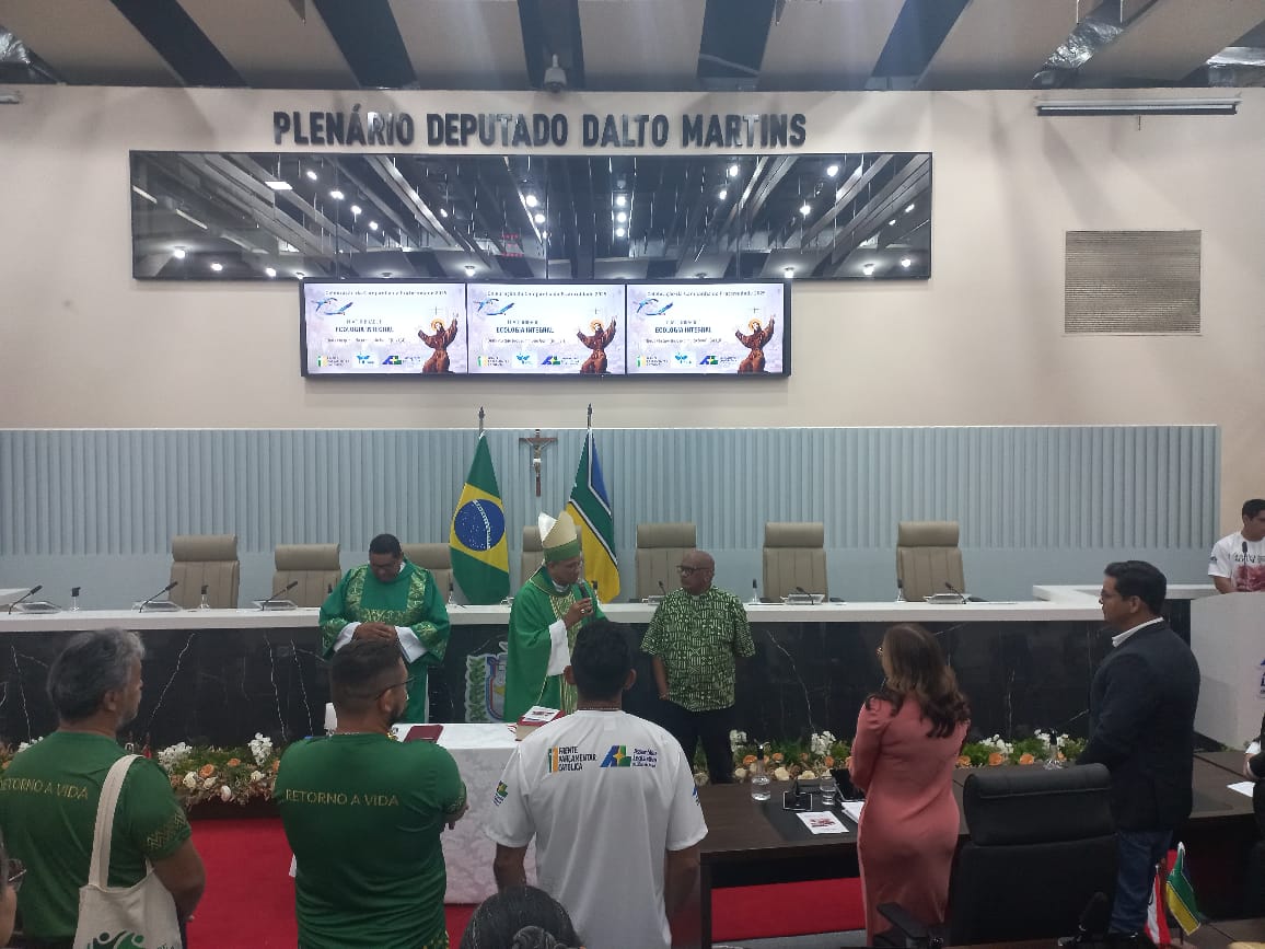 A Assembleia Legislativa do Amapá (Alap) instalou, pela segunda vez, a Frente Parlamentar Católica. A cerimônia de abertura foi realizada na manhã desta segunda-feira (16), com missa celebrada pelo bispo da Diocese de Macapá, dom Antônio Assis Ribeiro, no plenário Deputado Dalto Martins. A frente atuará no biênio 2025/2026, sob coordenação da deputada Aldilene Souza (PDT).