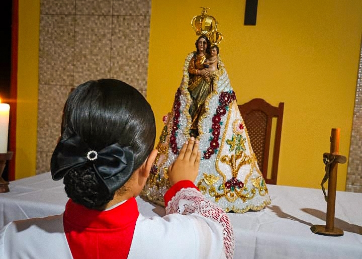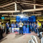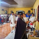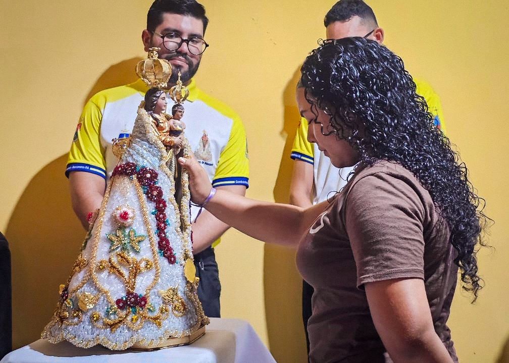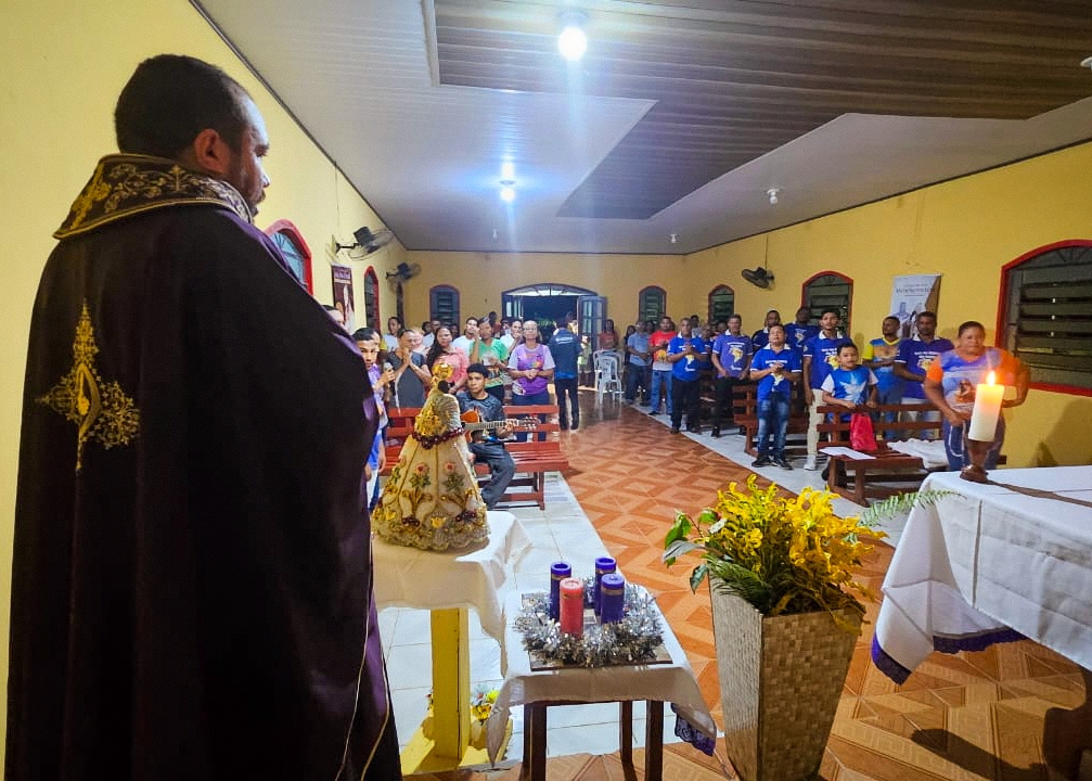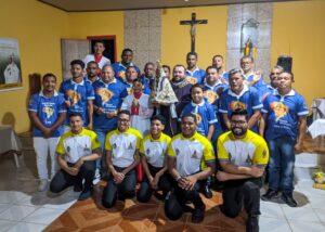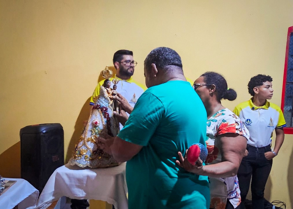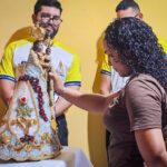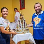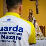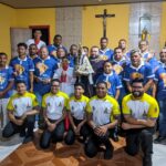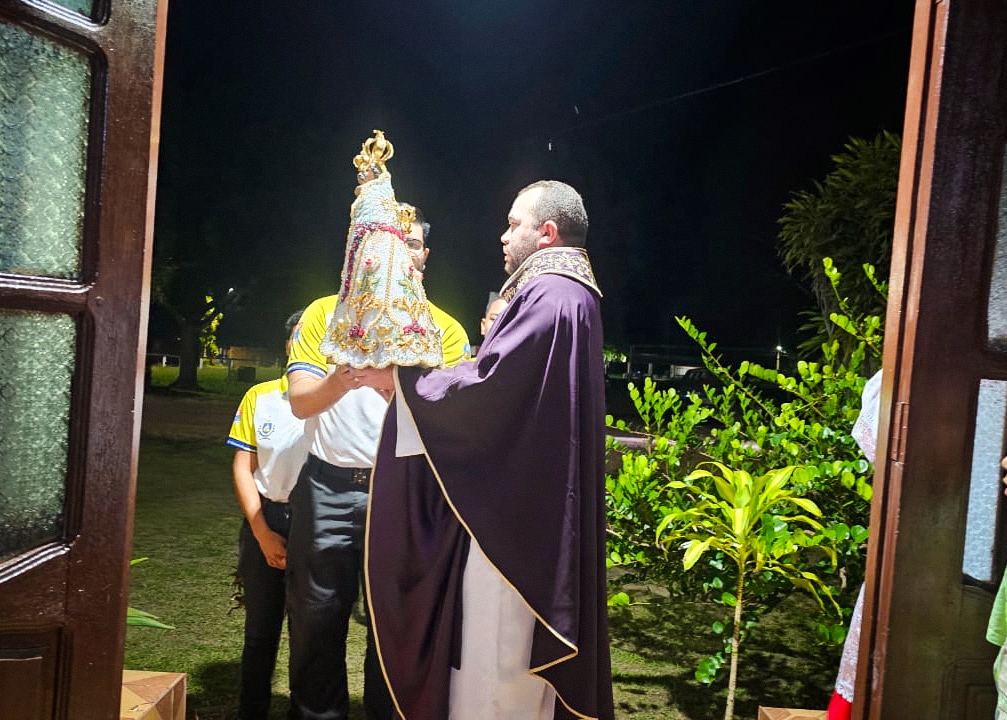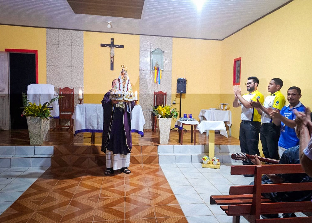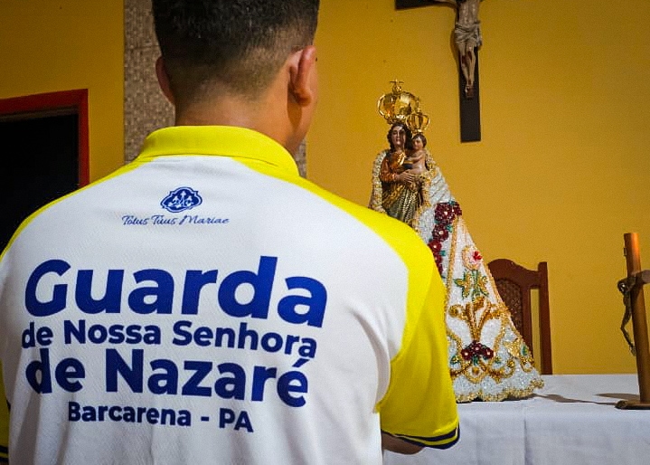 A programação festiva foi centrada na Santa Missa, presidida pelo pároco, padre Francisco Messias. A celebração ganhou contornos ainda mais especiais com a apresentação de duas crianças e a emocionante acolhida da imagem peregrina de Nossa Senhora de Nazaré, trazida pelos seus guardas da Paróquia São Francisco Xavier – Barcarena. O momento culminou com a bênção das novas camisas do Terço dos Homens, um símbolo visível do renovado empenho com a oração e o serviço à Igreja.