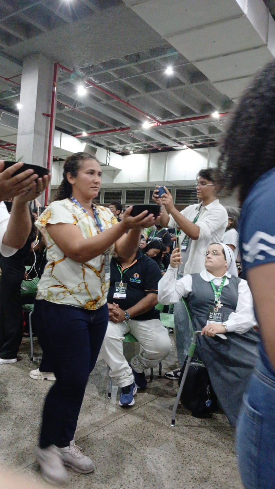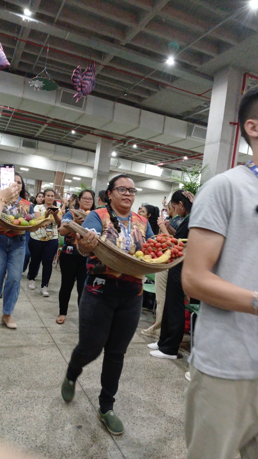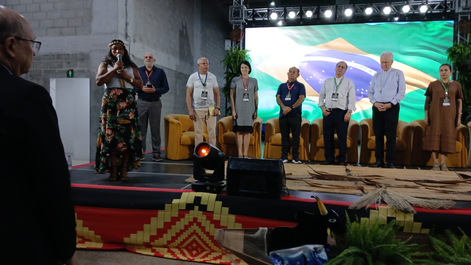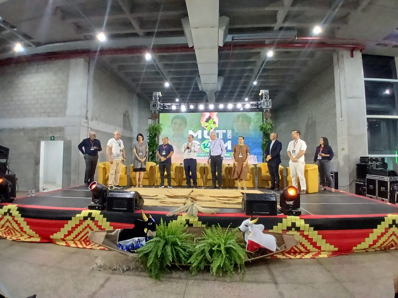 Após Celebração Eucarística a equipe do Muticom ofereceu um jantar a todos os presentes, e em seguida, antes que os responsáveis pela realização do evento dessem as boas-vindas aos comunicadores. O cerimonial do evento convidou Natalina Martins Ricardo, do povo Baré, da Comunidade Parque das Tribos, a cantar o Hino Nacional em Nheengatu, a Língua Geral Amazônica.