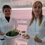 - Acadêmica Camila e profa. Eliandra mostram o resultado do trabalho da biofábrica da produção das mudas de “unha-de-gato”. Foto: Aritana Aguiar