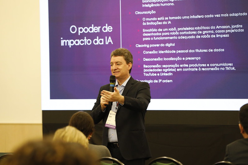 A quinta mesa-redonda, no terceiro dia de evento, explorou a inteligência artificial na educação. Ir. José de Assis Elias de Brito mediou a discussão entre Fernando Trevisani e Rosa Maria Vicari, que abordaram as questões éticas, pedagógicas e sociais da tecnologia, destacando a importância de manter o ser humano no centro do processo educativo.