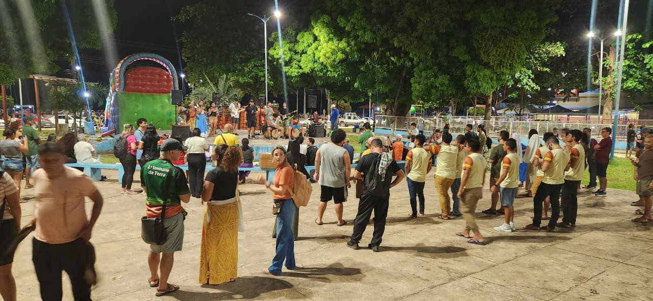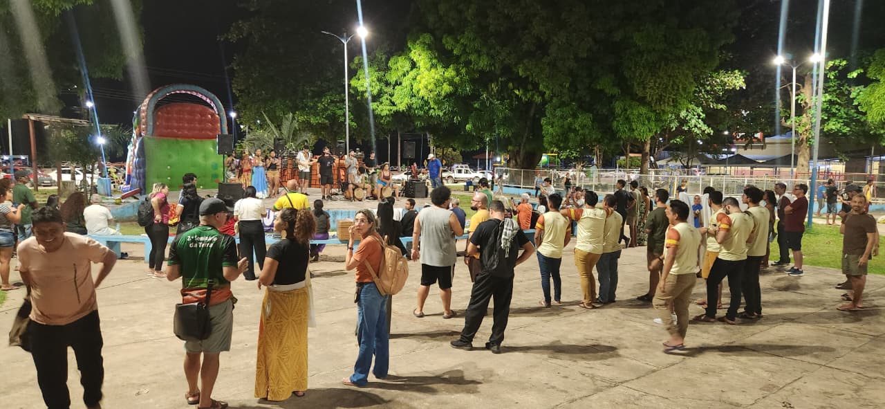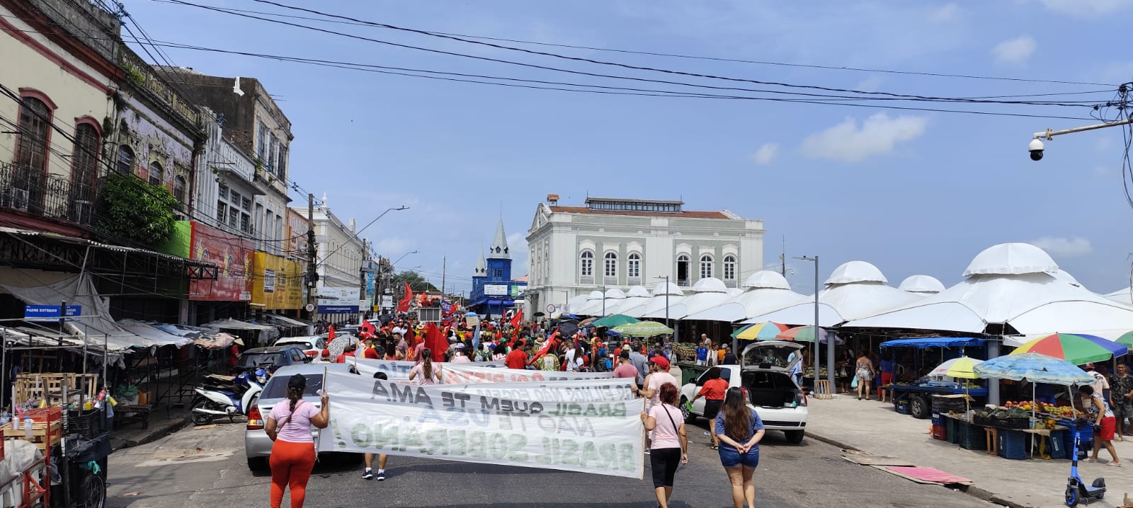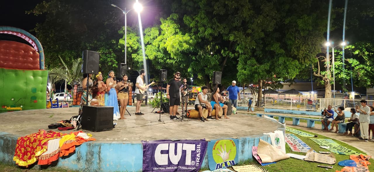 O ato foi encerrado na Praça Tiradentes, com um momento cultural marcado pela apresentação do Batuque Santareno, que reuniu diversos grupos de carimbó.