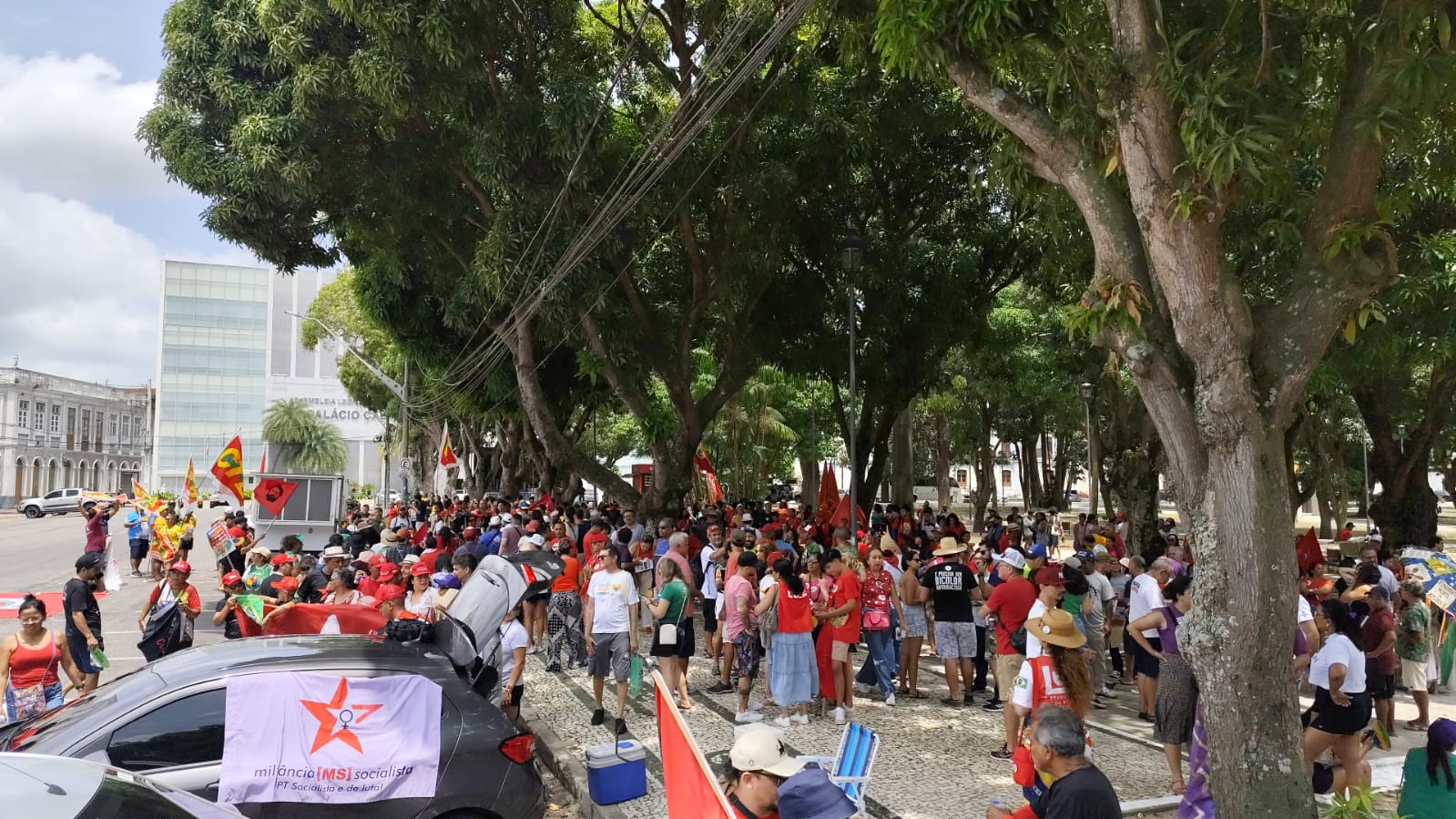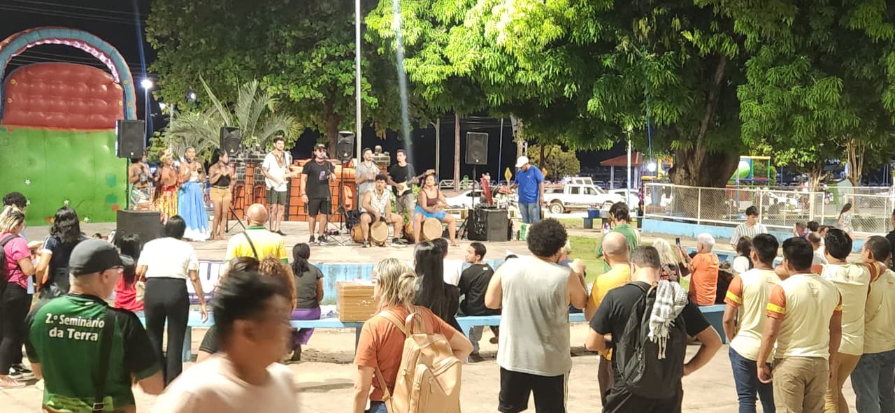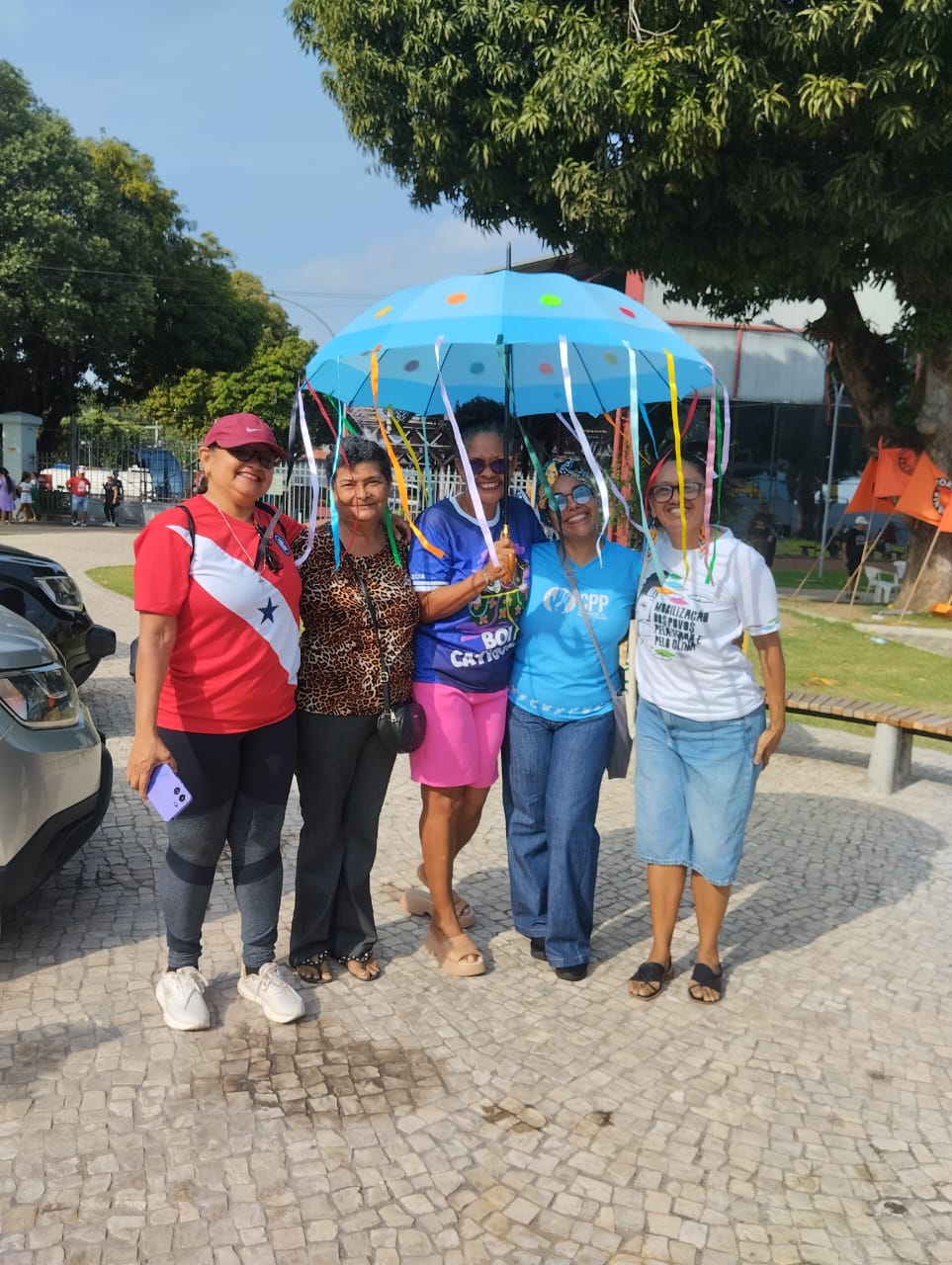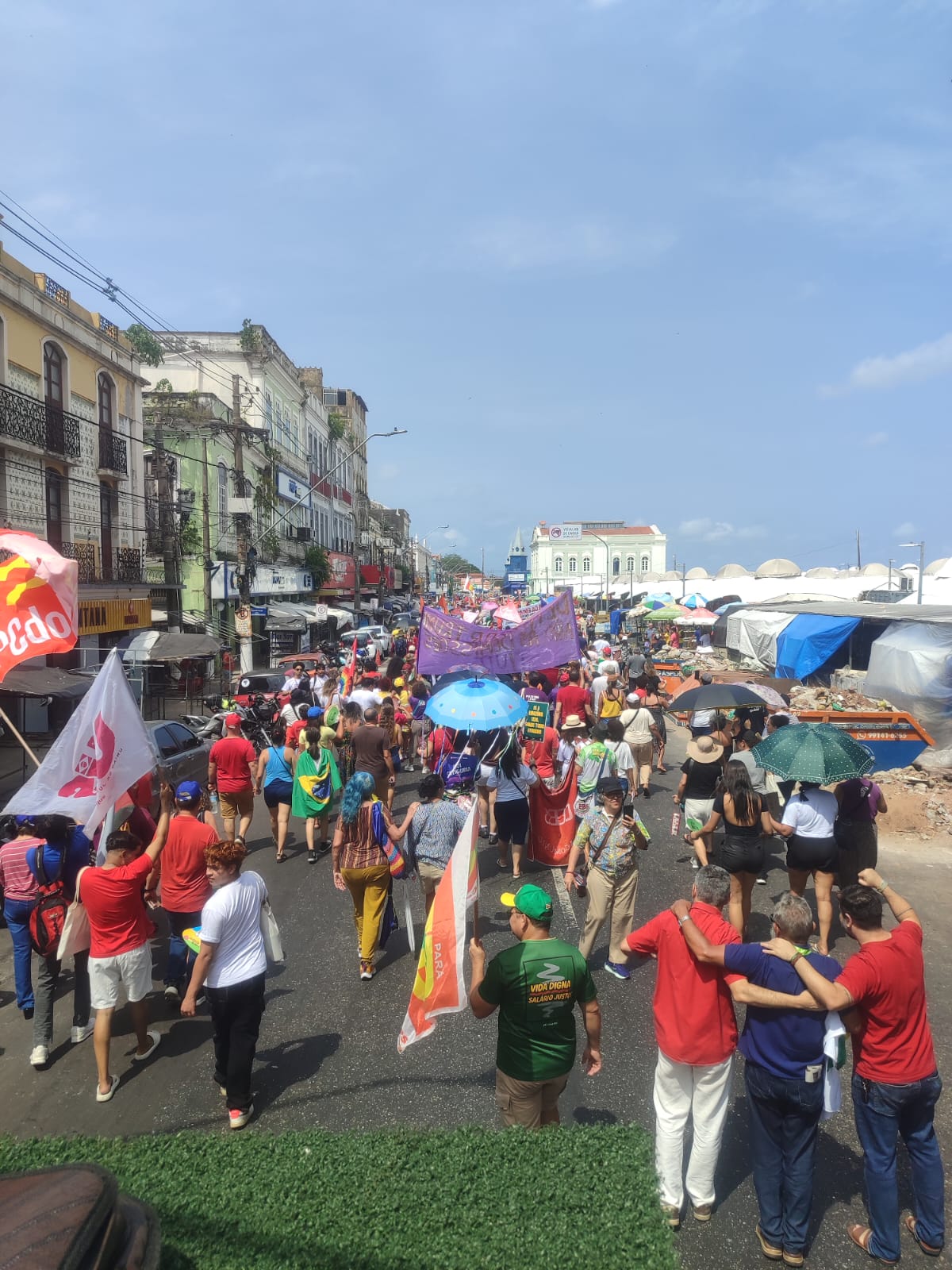 O ato foi encerrado na Praça Tiradentes, com um momento cultural marcado pela apresentação do Batuque Santareno, que reuniu diversos grupos de carimbó.